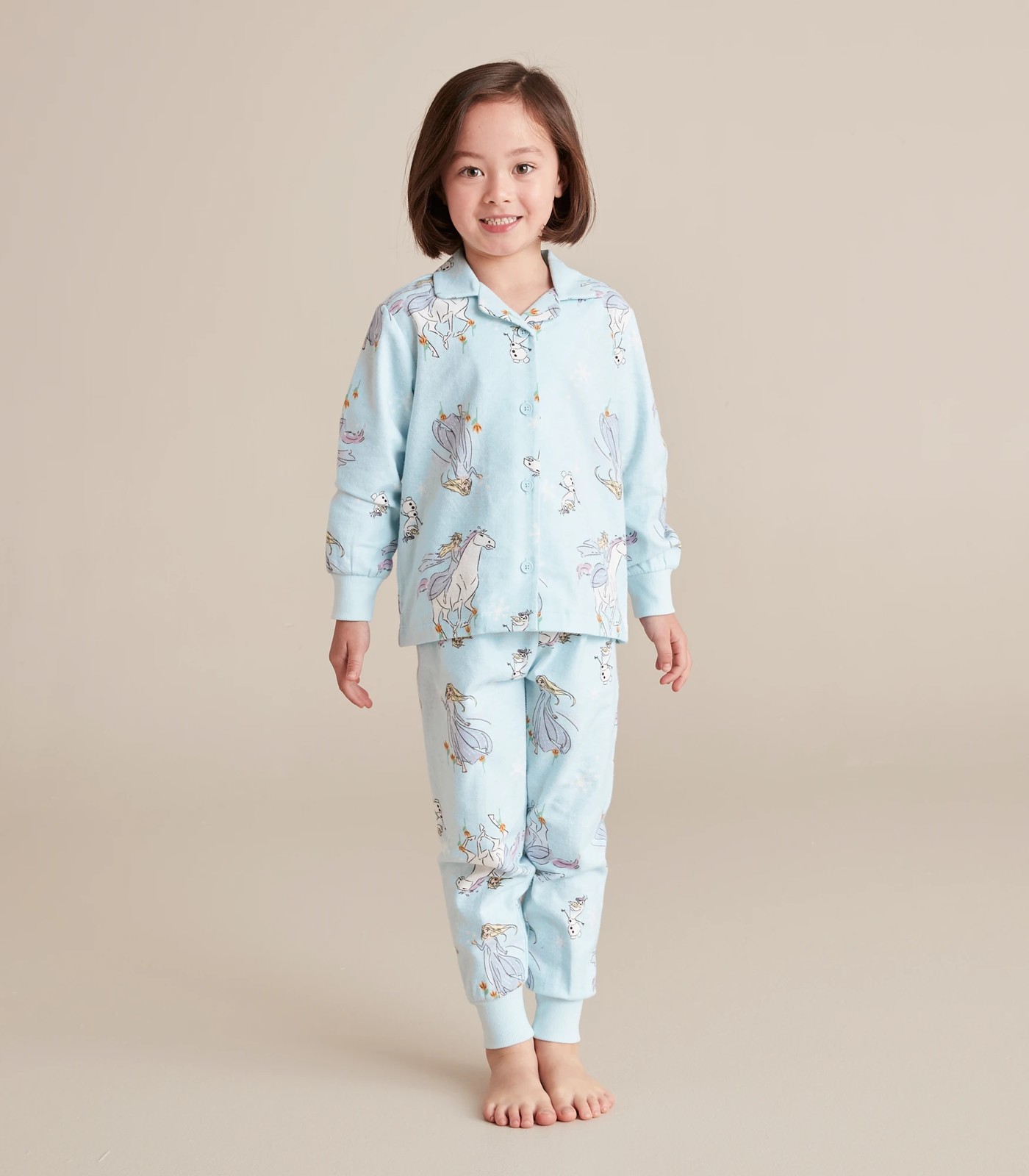 She'll sleep blissfully in the Disney Frozen Flannelette Cotton Pyjama Set, featuring a button up front, long sleeves with ribbed cuffs, matching pants with an all over Disney Frozen print and crafted from soft cotton for all night comfort.