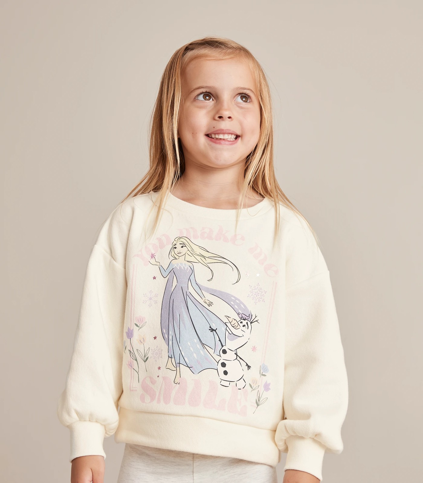 Fans will love the cream Disney Frozen Jumper featuring a ribbed crew neck, large Elsa print to chest and fleece lining for extra comfort and warmth.