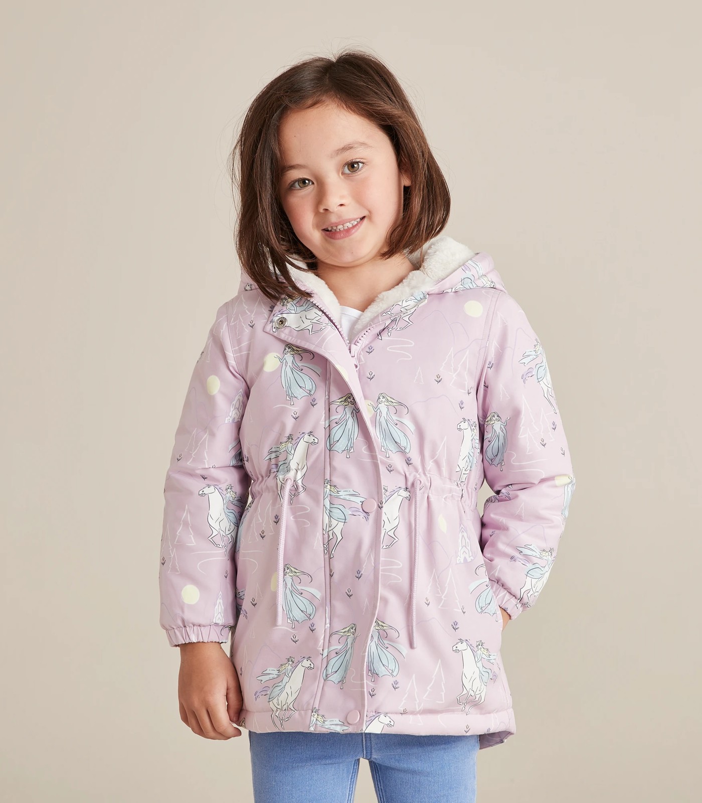 She'll stay warm and cosy in the Disney Frozen Parka Jacket, featuring a hood with faux fur lining, a zip front with press studs, an internal drawstring for a close fit and is shower resistant.