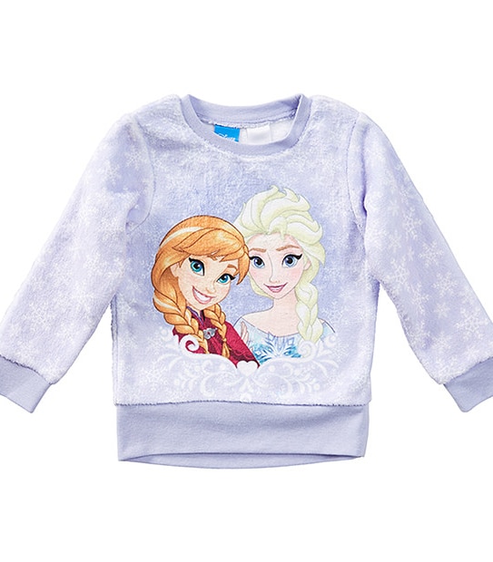 Your Disney Frozen fan will love this amazingly soft, polar fleece pullover jumper which features a gorgeous print of sisters Anna and Elsa over a pretty snowflake background. With wide ribbed cuffs and hem to help keep out the cold. Wear with a pair of our Disney Frozen leggings for a truly magical look.