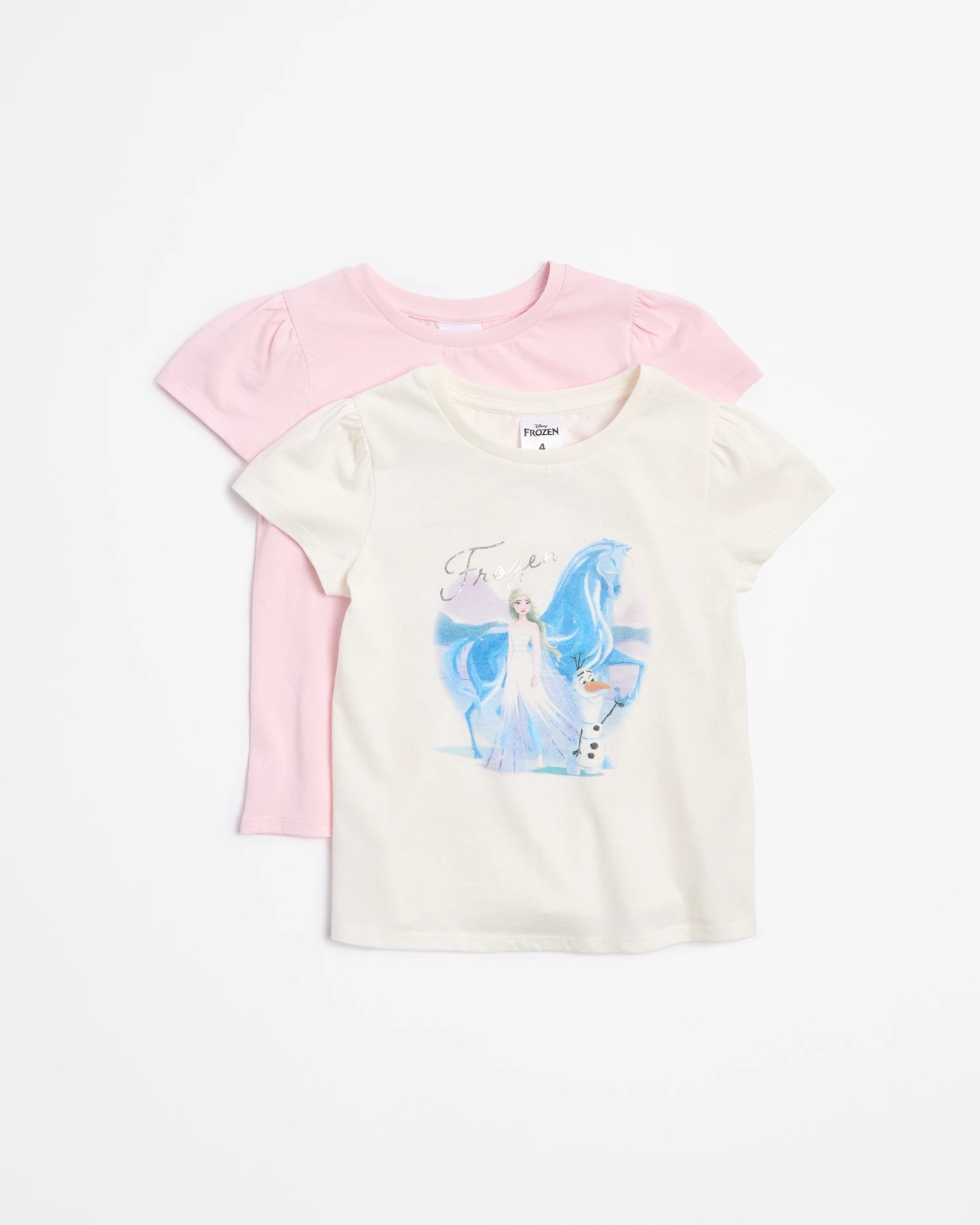 Surprise your little fan of Disney's Frozen with our enchanting 2-pack T-shirt set. Made from soft, breathable cotton, these T-shirts promise utmost comfort for everyday play. Featuring delightful Frozen prints on the front, these shirts come in charming pink and white hues. The design includes a classic crew neck and stylish cap sleeves with gathered shoulders, ensuring both fashion and ease of movement. Perfect for any casual day, these T-shirts are sure to become a favourite in your child's wardrobe!