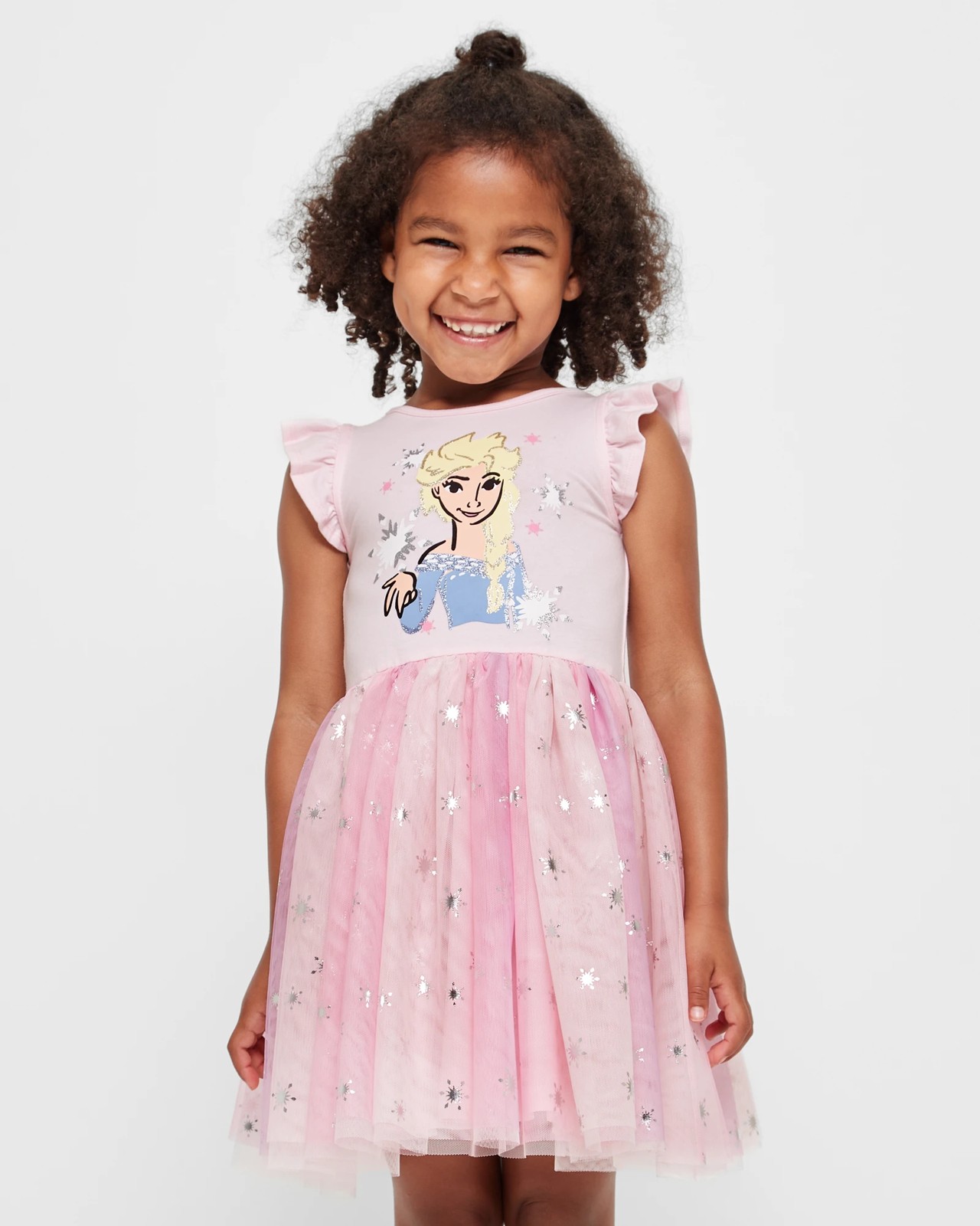 Make your little princess feel like a magical snow queen with the Disney Frozen Tulle Dress. Crafted from a soft and stretchy cotton blend fabric, this dress offers a regular fit for ultimate comfort. The pretty pink dress features a crew neck and sleeveless design with adorable frill shoulder trim detail. It showcases a large Elsa print on the chest with sparkling glitter accents, adding a touch of enchantment. The elastic waistband provides a perfect fit, and the tulle overlay skirt is adorned with metallic snowflake accents for an extra dose of charm. Complete with a cotton lined skirt, this dress will make any day feel like a winter wonderland. Get ready for an unforgettable adventure of playtime and twirling in this stunning Frozen dress.