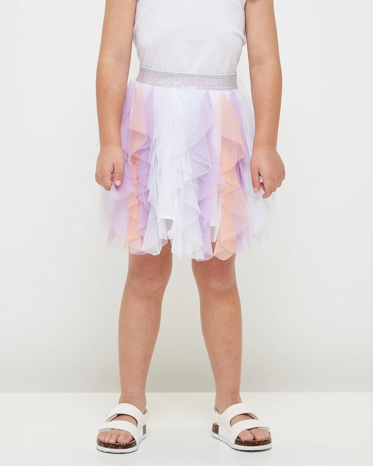 This gorgeous Disney Frozen Tulle Skirt is perfect for any young girl who loves the Disney movie. Crafted from lightweight tulle fabric, it features a regular pull on fit with a multi-colour waterfall tulle design that is sure to be a hit. A glitter elastic waistband adds extra sparkle, and a cotton lining helps keep her comfortable all day long. She’ll love twirling around in this special skirt!