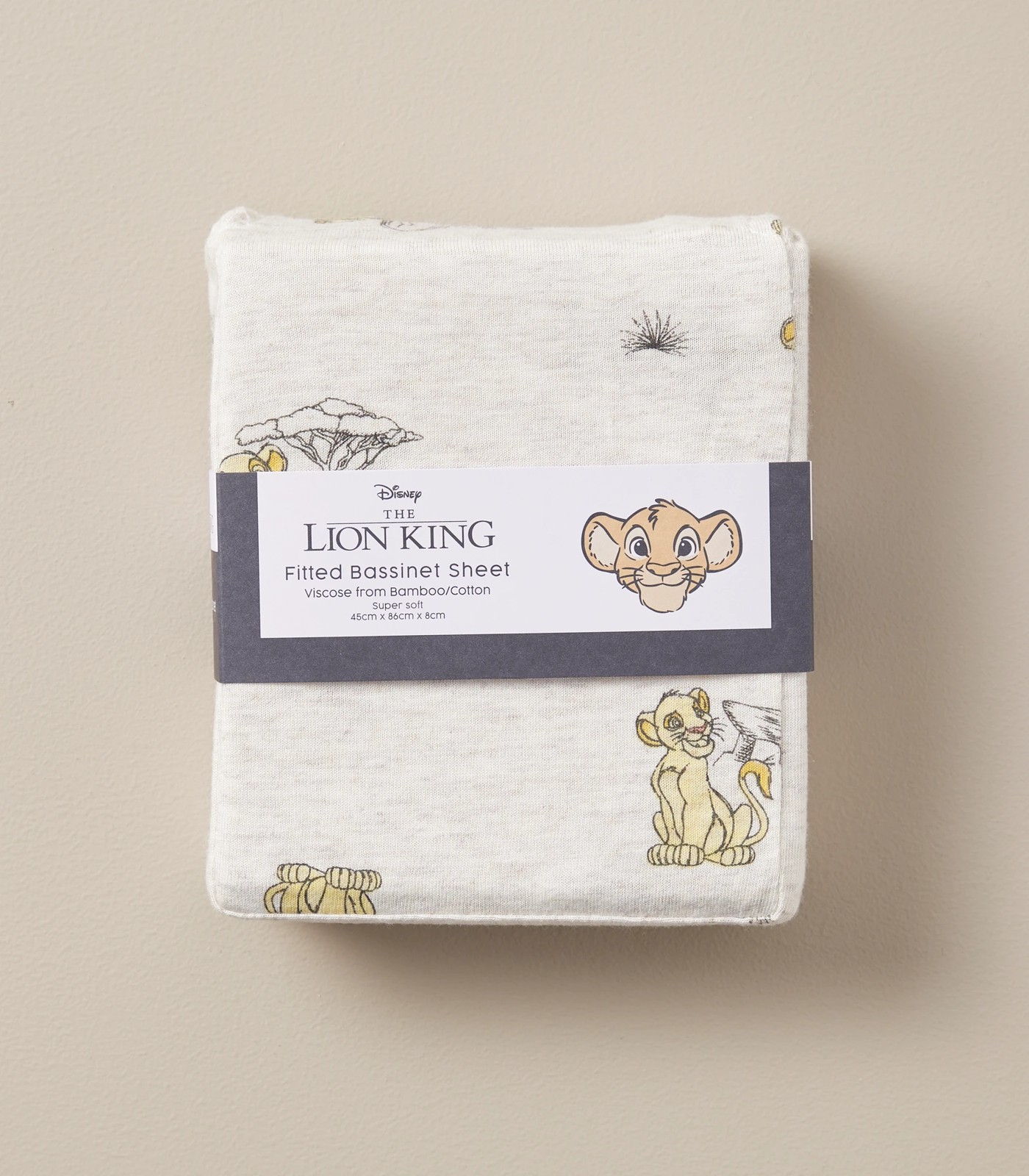 Crafted from soft viscose using bamboo cotton blend, the Disney Lion King Bamboo Fitted Bassinet Sheet makes for a great baby gift.