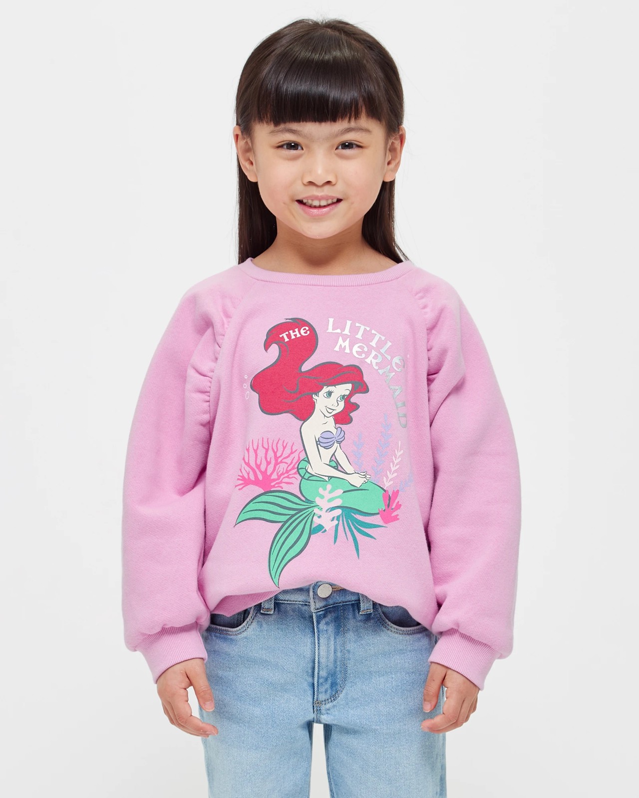 This soft, comfy jumper is perfect for any Disney fan! Crafted from a cotton poly blend, it features a regular fit and comes in a beautiful pink shade. It also has a ribbed crew neck, long raglan sleeves with gathered seams and ribbed cuffs. To finish off the look, there is a large Little Mermaid print to the chest, straight ribbed hem and is lined with fleece for extra warmth.