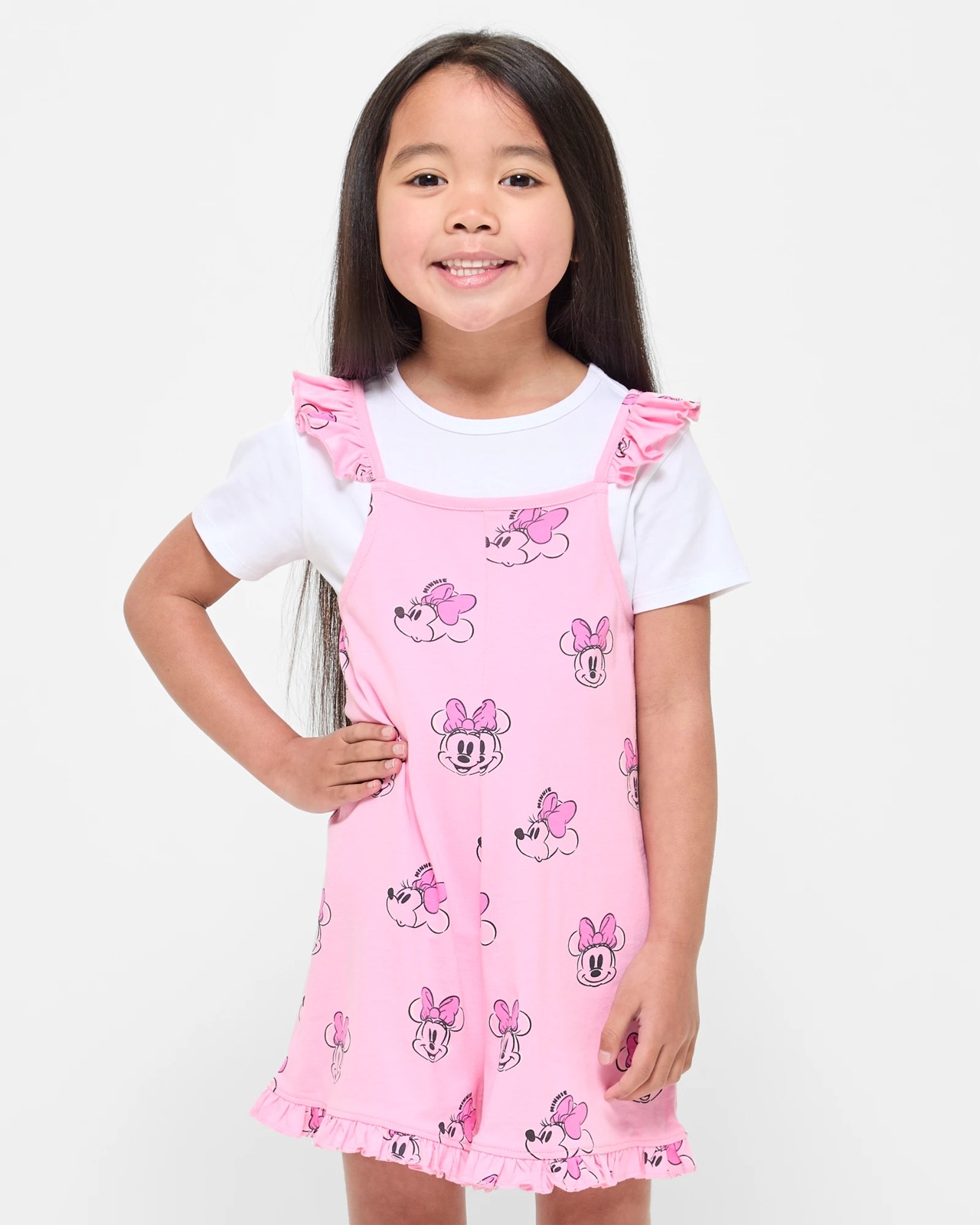 Let your little one channel their inner Minnie Mouse with this adorable 2-piece playsuit. Combining comfy cotton with charming Minnie Mouse prints, this outfit is perfect for playtime and outings. The playsuit features a delightful square neck and spaghetti straps adorned with frills, adding a touch of playful charm. Paired with a basic white t-shirt, it promises both style and comfort. Dress your child in this cute ensemble and watch their face light up with joy.