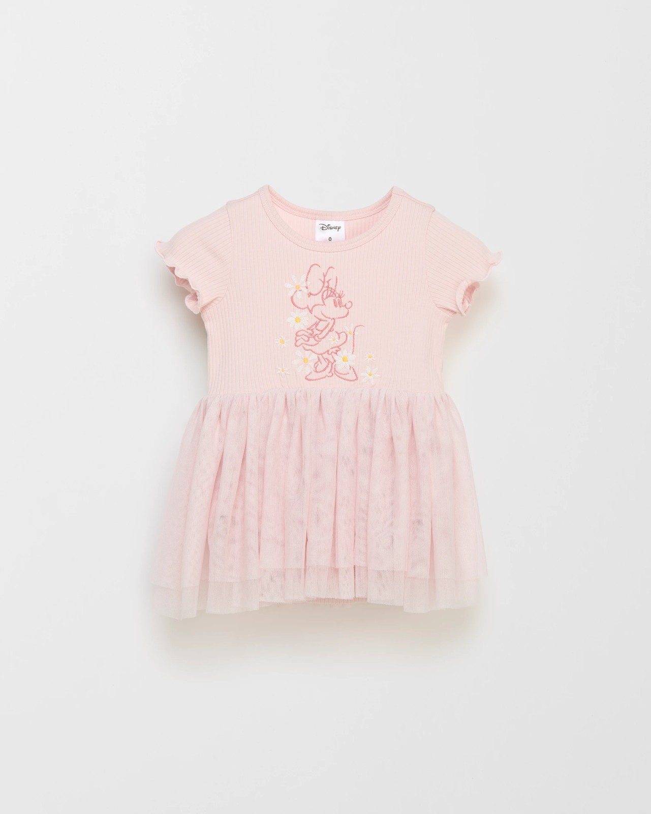 Your little one will steal the spotlight in the Disney Minnie Baby Rib Tutu Bodysuit Dress. Featuring a charming print of Minnie Mouse on the front, this dress effortlessly combines playfulness with comfort. The ribbed cotton and elastane blend gives a soft, stretchy feel that's gentle on delicate skin, while the four-layered tulle skirt adds a delightful flourish for everyday adventures or special occasions. Easy press studs at the crotch make nappy changes a breeze, so you can spend more time making memories. The short sleeves with cute lettuce cuffs and the regular fit ensure your baby moves comfortably and looks adorable all day long. Let your child twirl into the magic of Disney—treat your little star to this enchanting dress today.