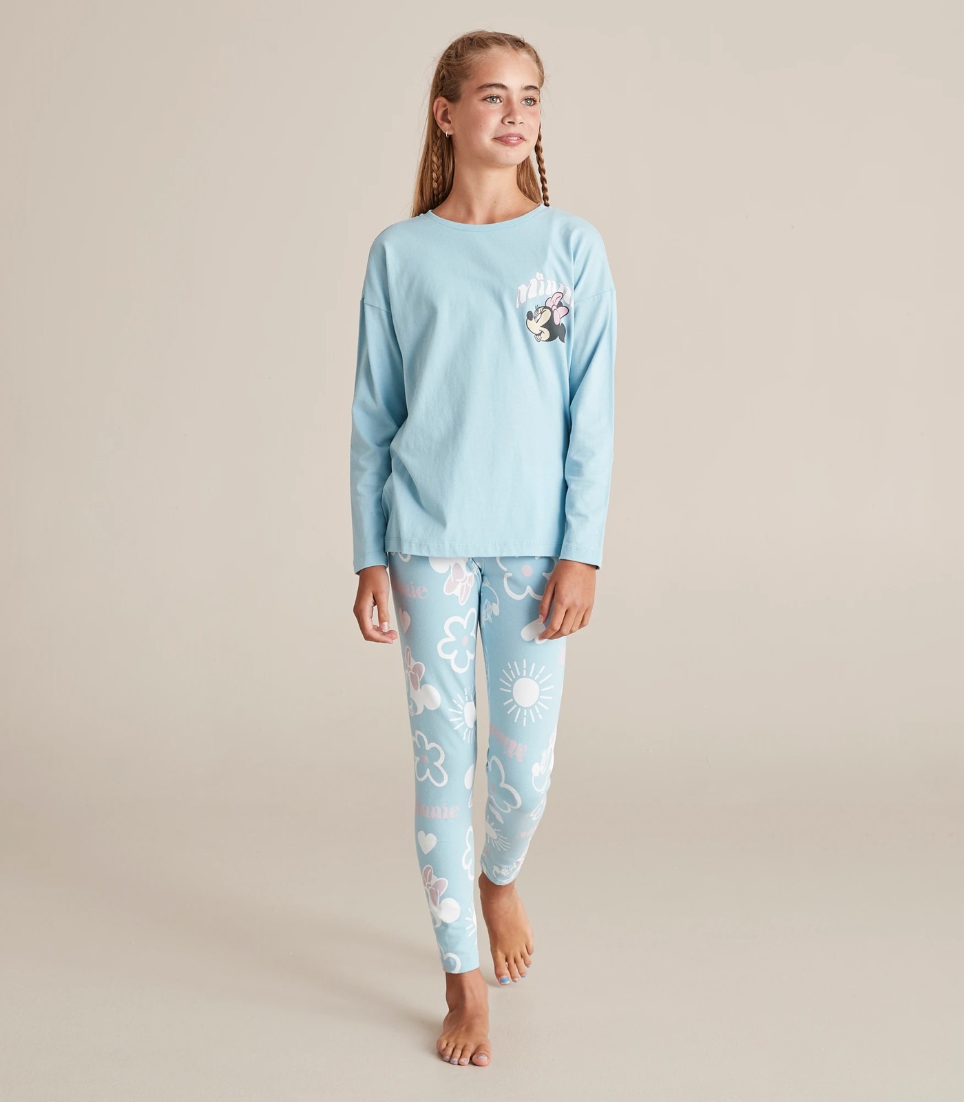 Fans will sleep blissfully in the blue Disney Minnie Mouse Cotton Pyjama Set, featuring a long sleeve top with Minnie print to chest and back, and matching all over print pants, crafted from soft cotton for all night comfort.