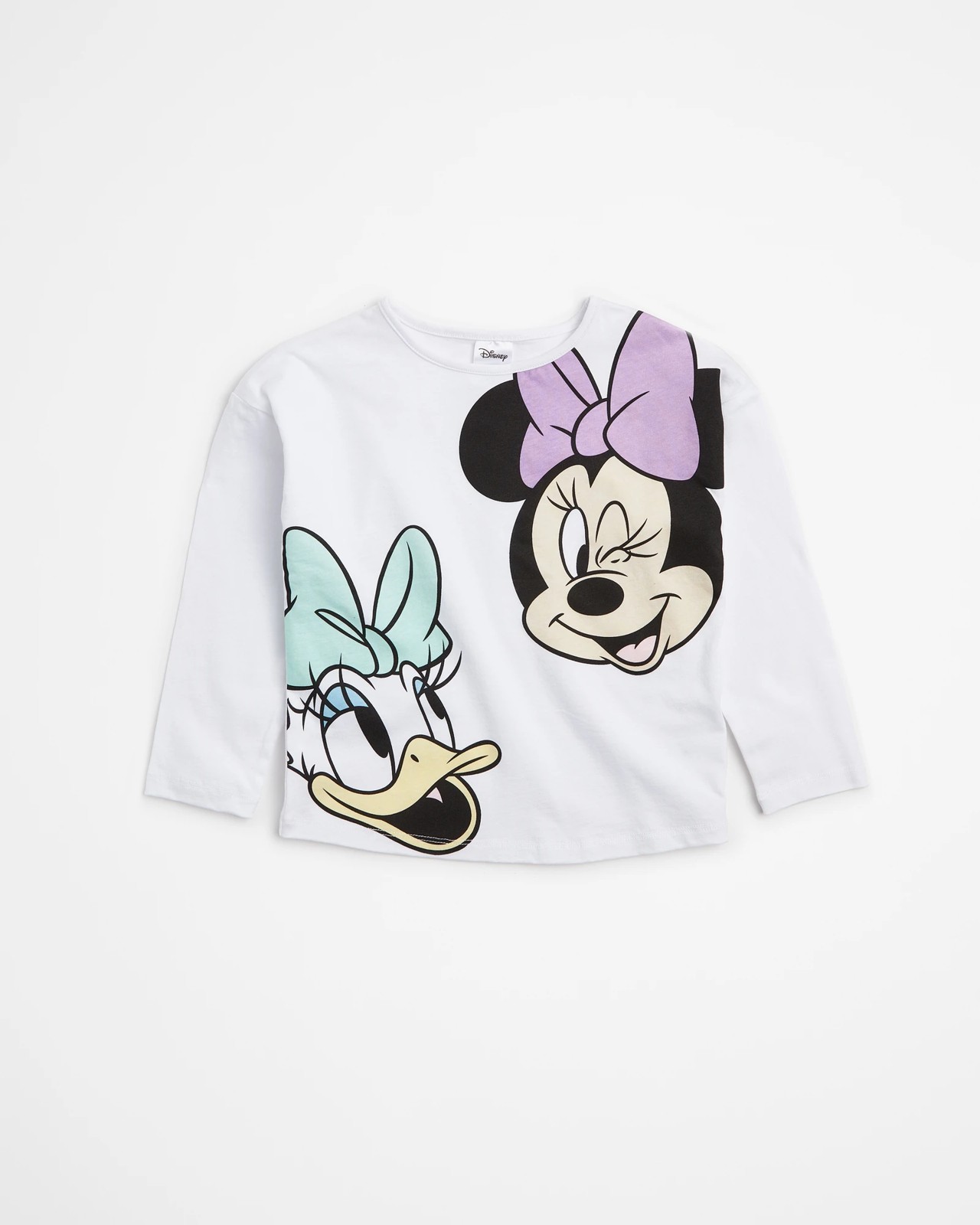 Experience the magic of Disney with our Minnie Mouse Long Sleeve Top. Crafted in soft cotton, the top features a delightful Minnie and Daisy print on the front, making a charming addition to any wardrobe. The regular fit and crew neck ensure comfort, while the long sleeves provide warmth on cooler days. Whether for a casual outing or a playdate, your little one will be full of style and joy with our Disney top. Don't miss out - make their day magical with our Minnie Mouse Long Sleeve Top today!