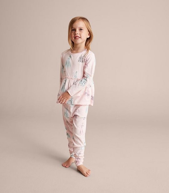 She'll sleep blissfully in the Disney Princess Peplum Pyjama Set featuring an all over Princess print with a long sleeve peplum top and matching pants crafted from soft poly cotton blend.