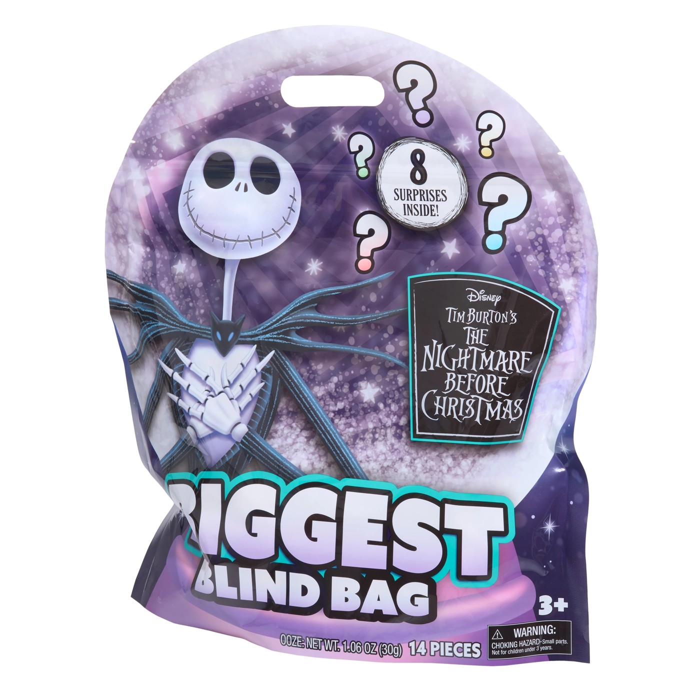 Unbox the unexpected with the Disney Tim Burton’s The Nightmare Before Christmas Biggest Blind Bag. Lurking inside this towering, 20-inch bag are 8 mysterious surprises that capture the enchanting charm of Halloween Town. Fans will discover an 80-piece puzzle, a super-soft huggable plushie, 2 toy figures, a Shrinky Dinks arts and crafts set, 2 clip-on charms, 4 creepy stickers, a container of eerie ooze, and a poster! Each item features striking purple and orange accents or fabrics that capture the gothic spirit of Tim Burton’s tale. Perfect for sparking creativity, each surprise invites kids and collectors alike to assemble the puzzle, craft haunting creations, and dream up imaginative adventures. A thrilling treat for fans, this Disney Biggest Blind Bag makes a frightfully fun rainy day surprise, birthday present, or holiday gift for kids ages 3 years and up. Look for more Disney Tim Burton's The Nightmare Before Christmas toys from Just Play, sold separately.