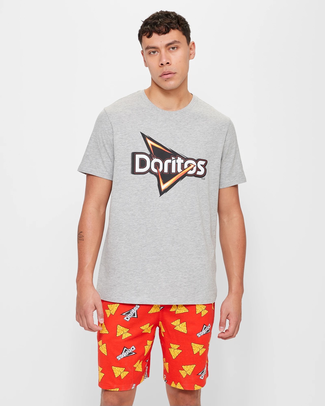 Express your fun and playful side with our Doritos® Licensed Pyjama Set. This set is made from a soft and breathable cotton fabrication, perfect for all night comfort. The Tee features a grey colour, crew neckline, Doritos chest print, short sleeves and straight hemline. The Shorts feature a red colour, elastic waist with drawstring and an all over Doritos print. Perfect for bedtime fun!