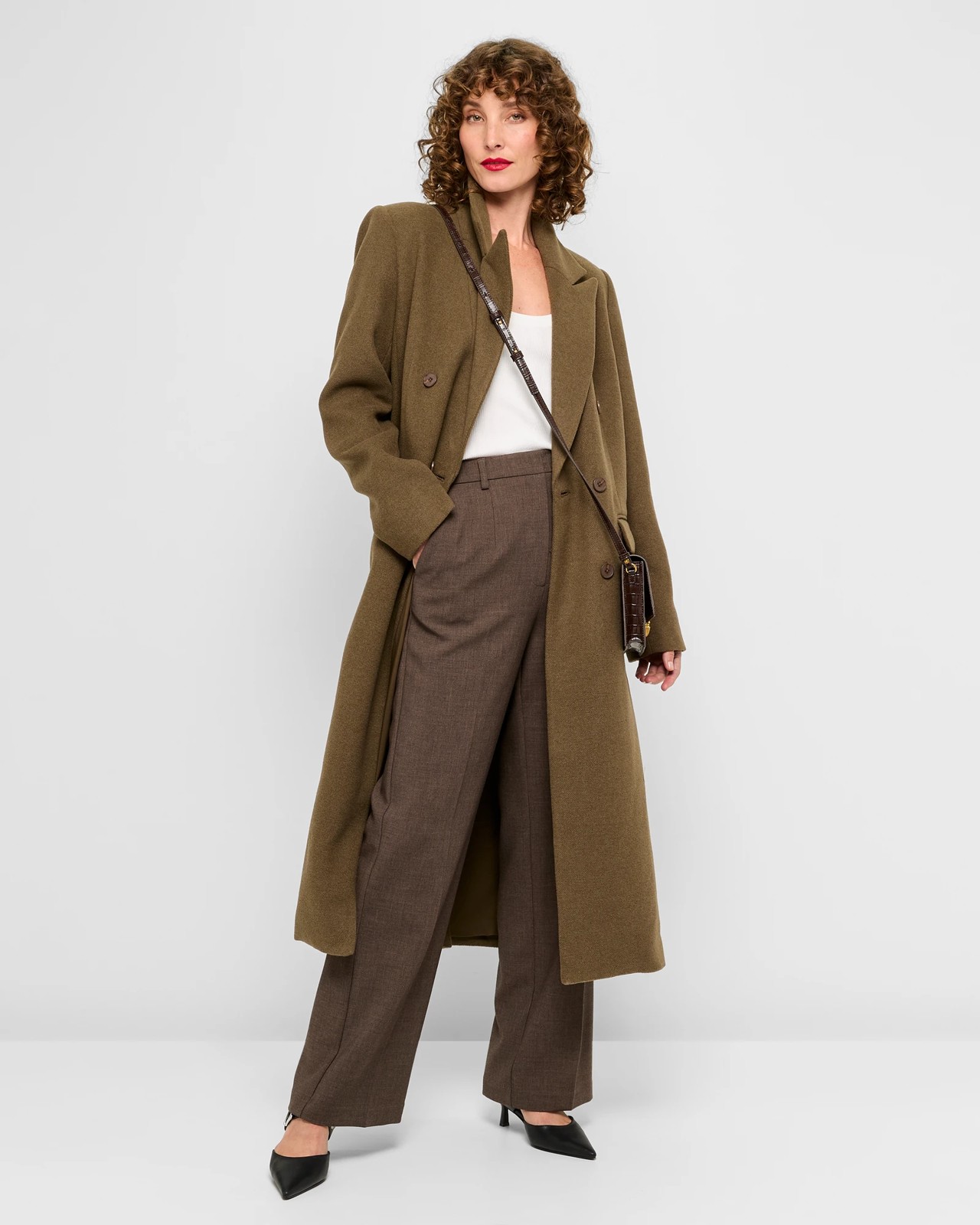 Get ready to enhance your wardrobe with our Double Breasted Tailored Coat. This stylish and timeless piece is expertly made from high-quality polyester, offering a soft inner lining for added comfort. The sophisticated double-breasted design, combined with a round collared neckline and front lapels, exudes a chic yet modern vibe. The classic long sleeves and front fold-over top pockets add both practicality and fashionable detail. Perfect for any occasion, this coat ensures ease of movement with its back centre bottom split. Pair it with your favourite outfit and make a statement. Don't miss out on adding this impeccable coat to your collection.