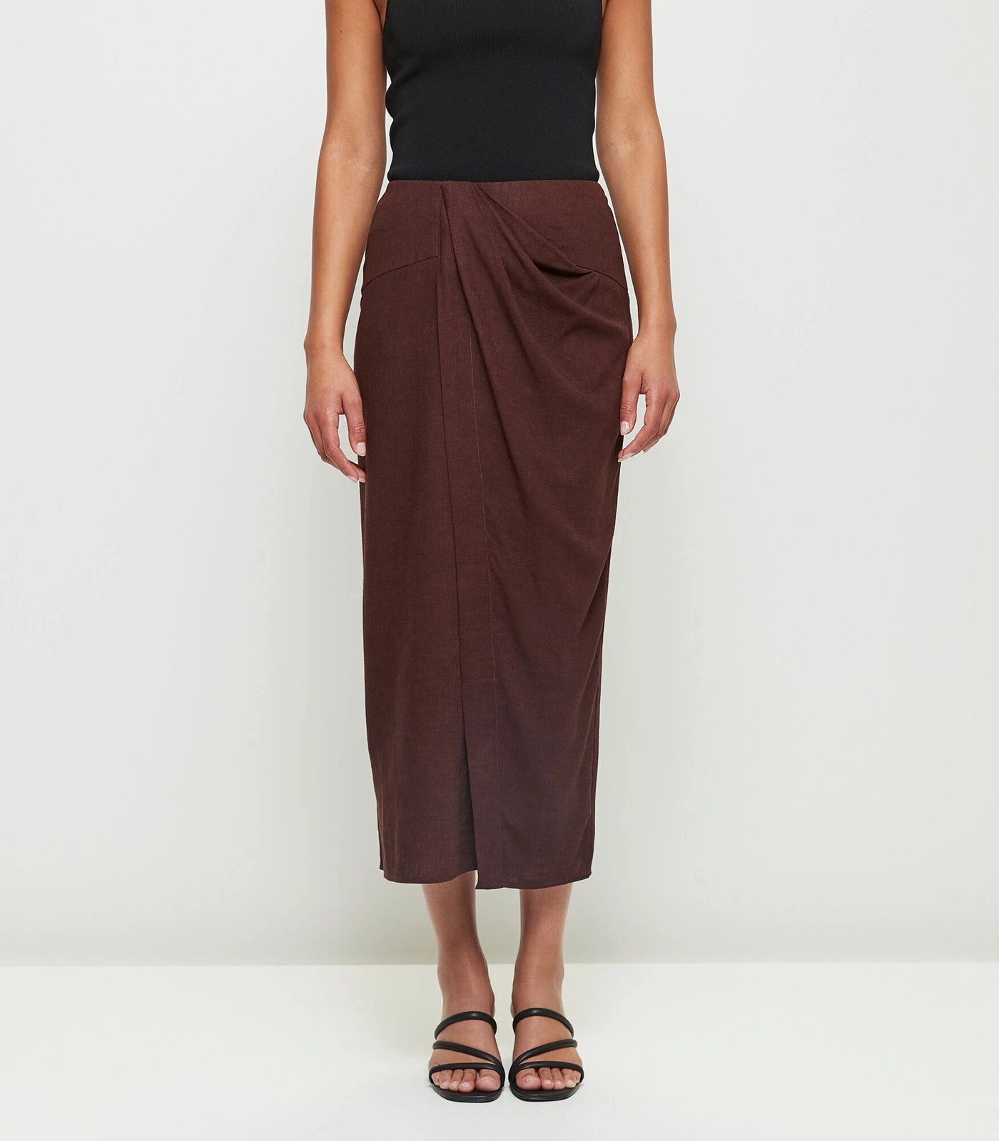 Make a statement with the Preview midi skirt from Target! Crafted from a lightweight blend of viscose and linen, this midi skirt is sure to keep you cool and comfortable all day long. Featuring a hidden elastic waistband, side invisible zip and draping down the front of the skirt, this piece is finished with a fold over front and straight hemline for added shape. With its regular fit and midi length, you'll love styling this versatile design with a range of your favourite tops.