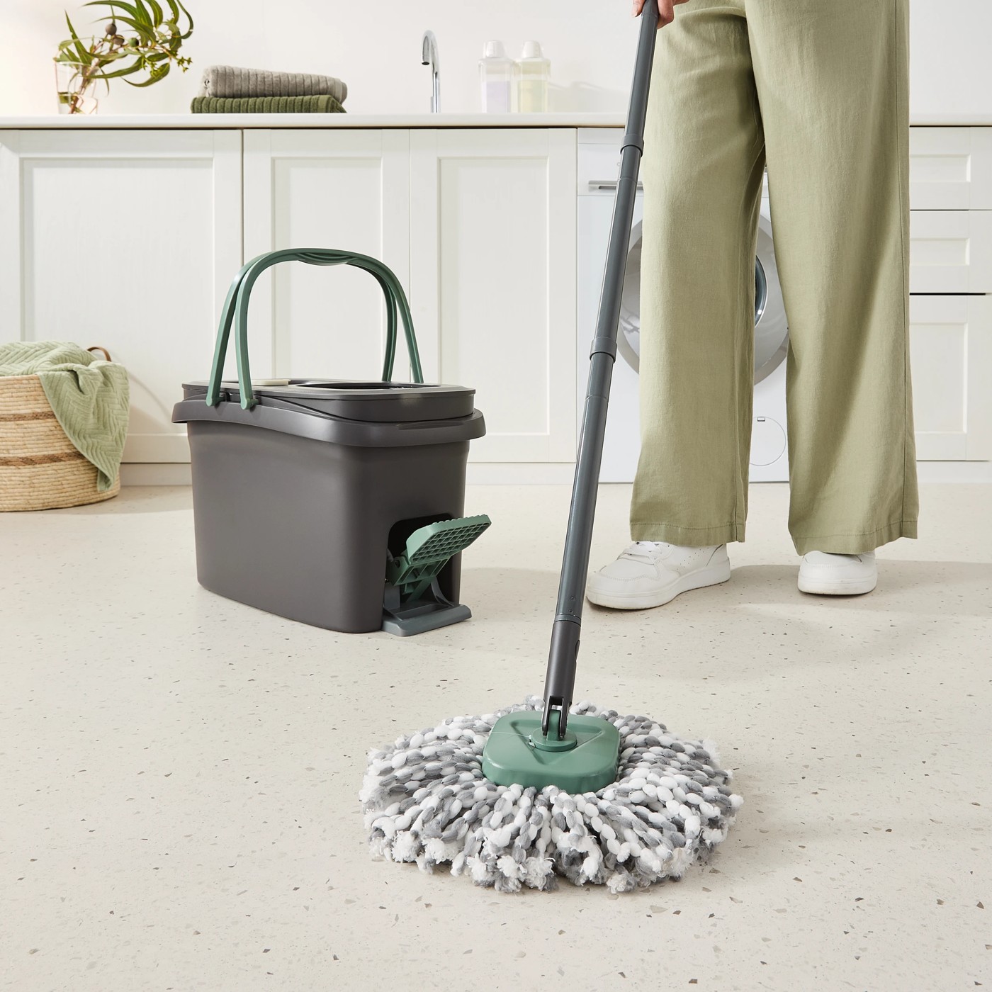 Enjoy an effortless floor cleaning experience with this Dual Section Pedal Mop Set from Anko. Its clever design keeps clean and dirty water separate, so every swish of the mop leaves your floors gleaming with minimal fuss. Convenient compartments and a foot pedal make rinsing and wringing out the mop surprisingly simple and mess-free. The spacious bucket and supportive carry handle help you move from room to room with ease, taking on spills and everyday dirt with confidence. Discover the satisfaction of a sparkling home without the hassle, and let this practical mop set bring extra shine to your daily routine. Give it a try and feel the difference in your cleaning results.