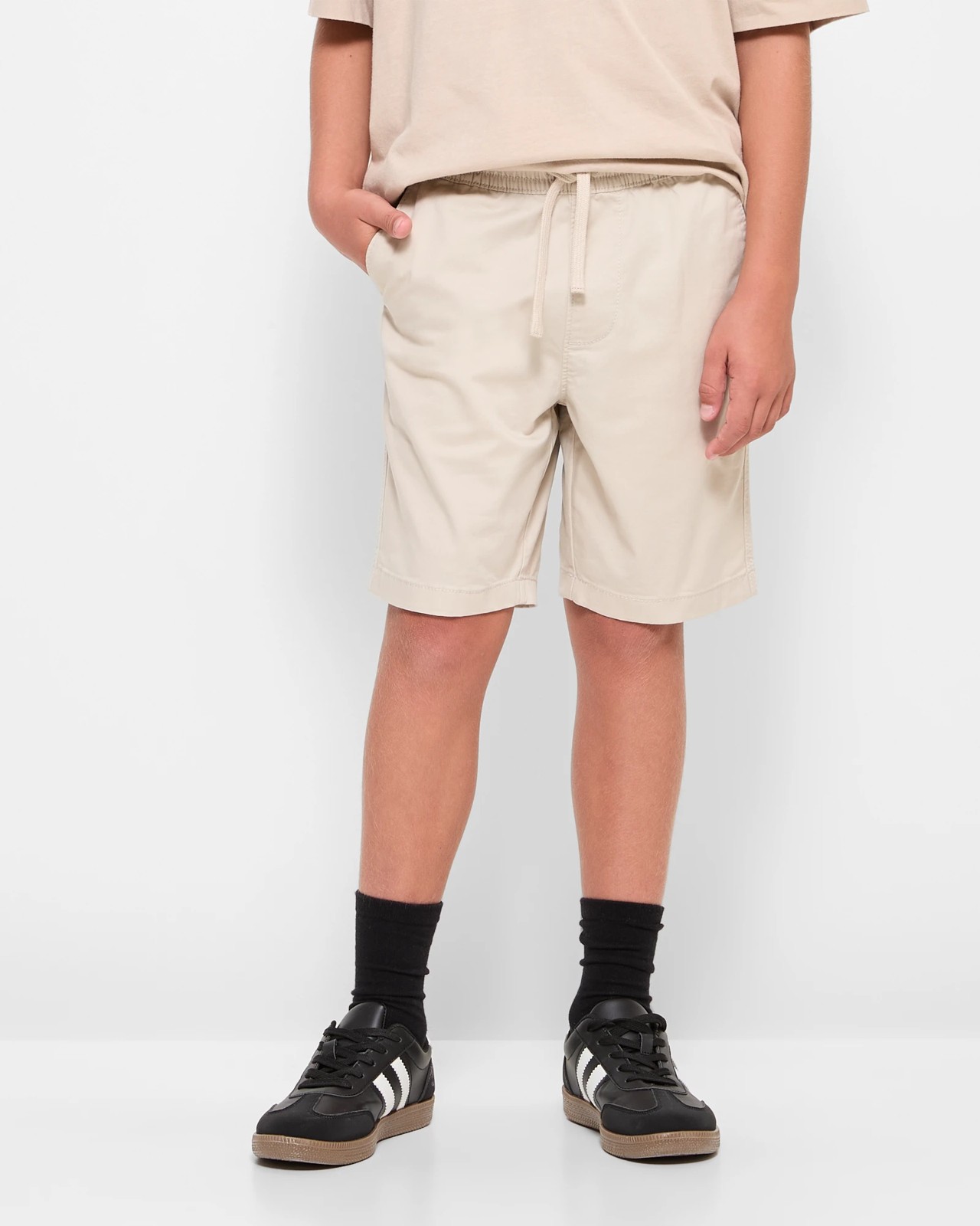 Step into style and comfort with our Elastic Waist Chino Shorts for boys. Crafted from soft cotton with added stretch, these shorts offer a regular pull-on fit for easy wear. Featuring an elastic waistband with a drawcord, side pockets, and a single back pocket, these shorts combine practicality with a trendy look. Perfect for everyday wear or special occasions, these shorts provide a versatile option for any young trendsetter.