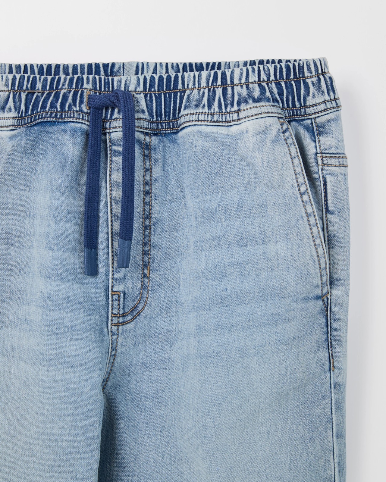 Elastic Waistband Terry Jogger Denim Jeans - Light Wash