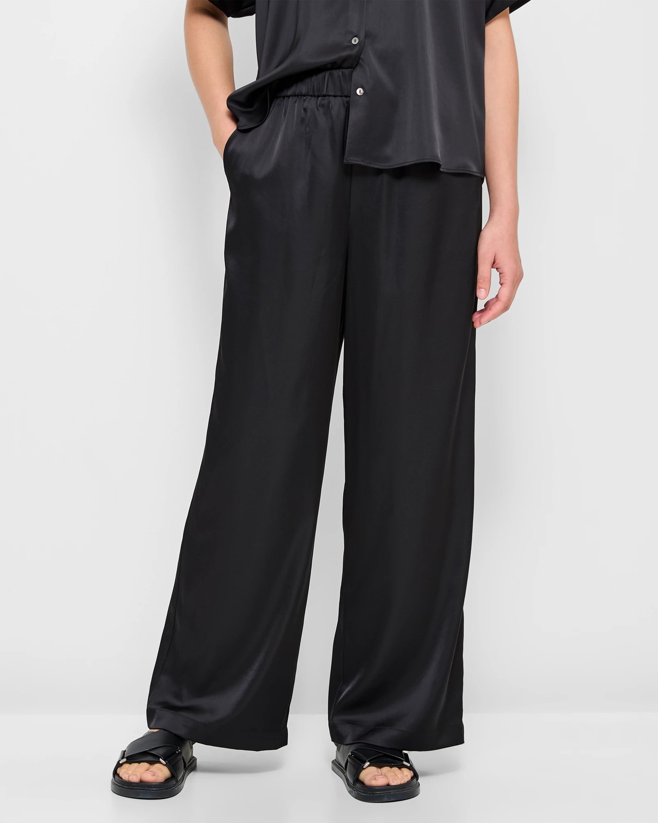 Experience comfort and style with our Elasticated Satin Pants from Preview. Crafted from a luxurious polyester blend with a touch of stretch, these pants offer a satin-like feel and a flattering high-waisted fit. Perfect for everyday wear or special occasions, they feature a wide leg cut and convenient side pockets. Embrace the use of recycled materials. Elevate your wardrobe today!