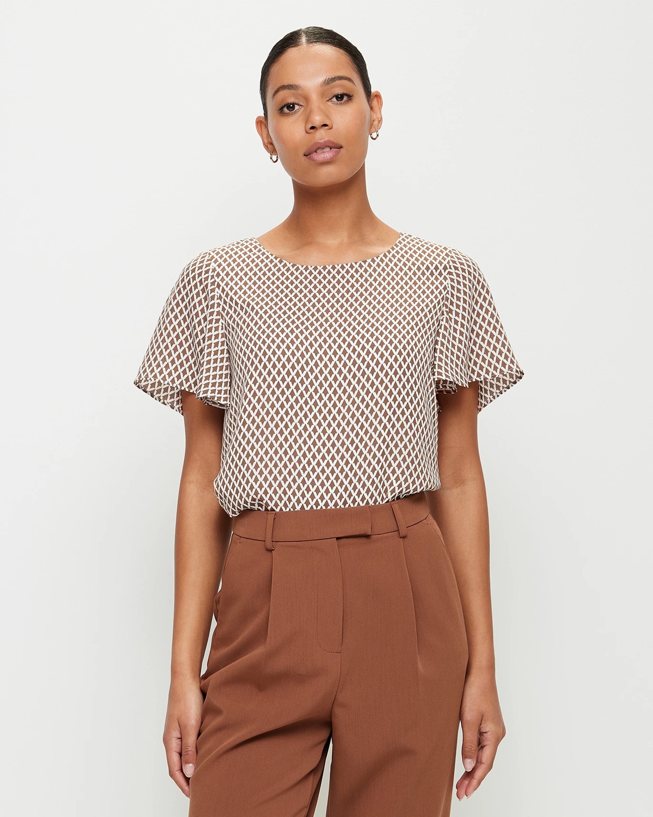 Make a statement in our Preview Ella Top. Crafted from a lightweight polyester fabrication, this top is fully lined and features a geo print. With a regular fit, crew neckline, short flutter sleeves, and curved hemline, this top is perfect for any occasion. Make it yours and style it with denim or skirts to complete the look.