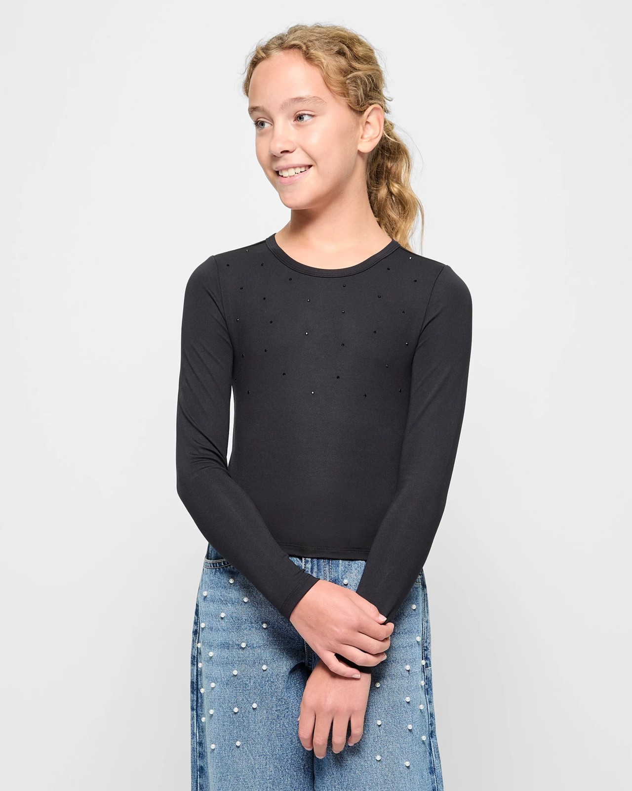 Step out in style with this Embellished Long Sleeve Fitted Top. The crew neck and long sleeves provide a classic look, while the front embellishments add a touch of glamour. Ideal for both casual and special occasions, this top promises to be a versatile addition to any wardrobe. Feel confident and chic, any day of the week.