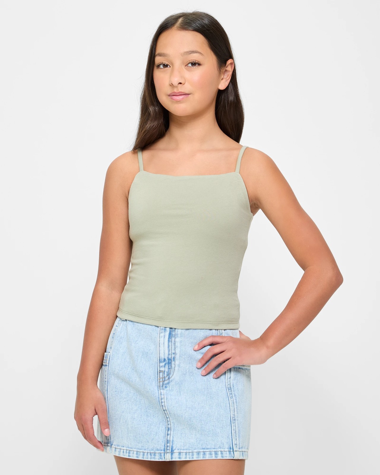 Indulge in retro-inspired comfort with our Essential '90's Singlet. Crafted from a soft, stretchy cotton blend, featuring a slightly cropped length, and spaghetti straps for a touch of nostalgia. Fully lined for extra support with a stylish square neckline and a clean straight hem, making her feel effortlessly cool and casual. Embrace a timeless look and feel confident in our versatile design that pairs perfectly with high-waisted bottoms for a fun and easy style. Don't miss out on bringing a touch of the '90's to her wardrobe today!