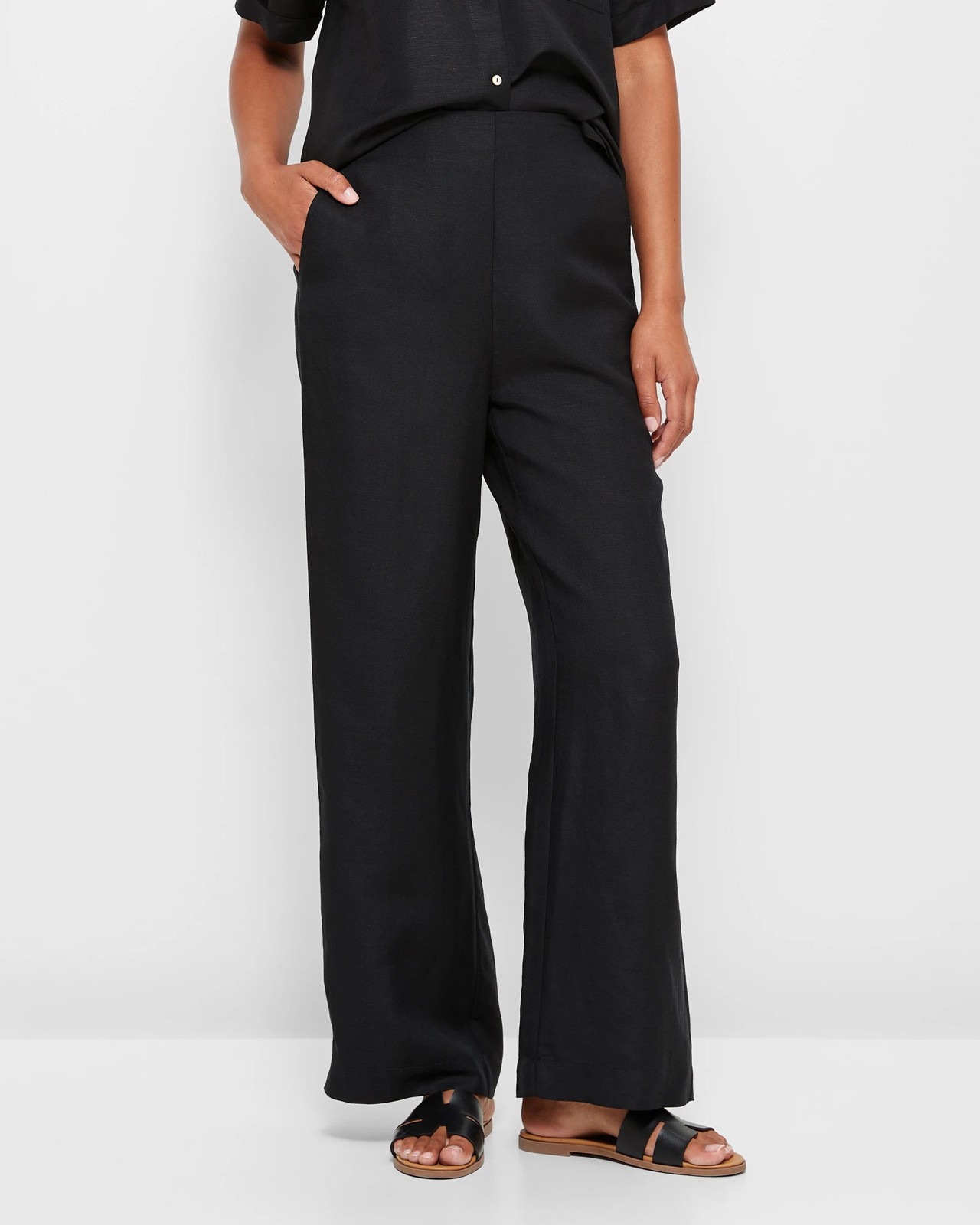 European Linen Blend Flat Wide Leg Pants - Preview