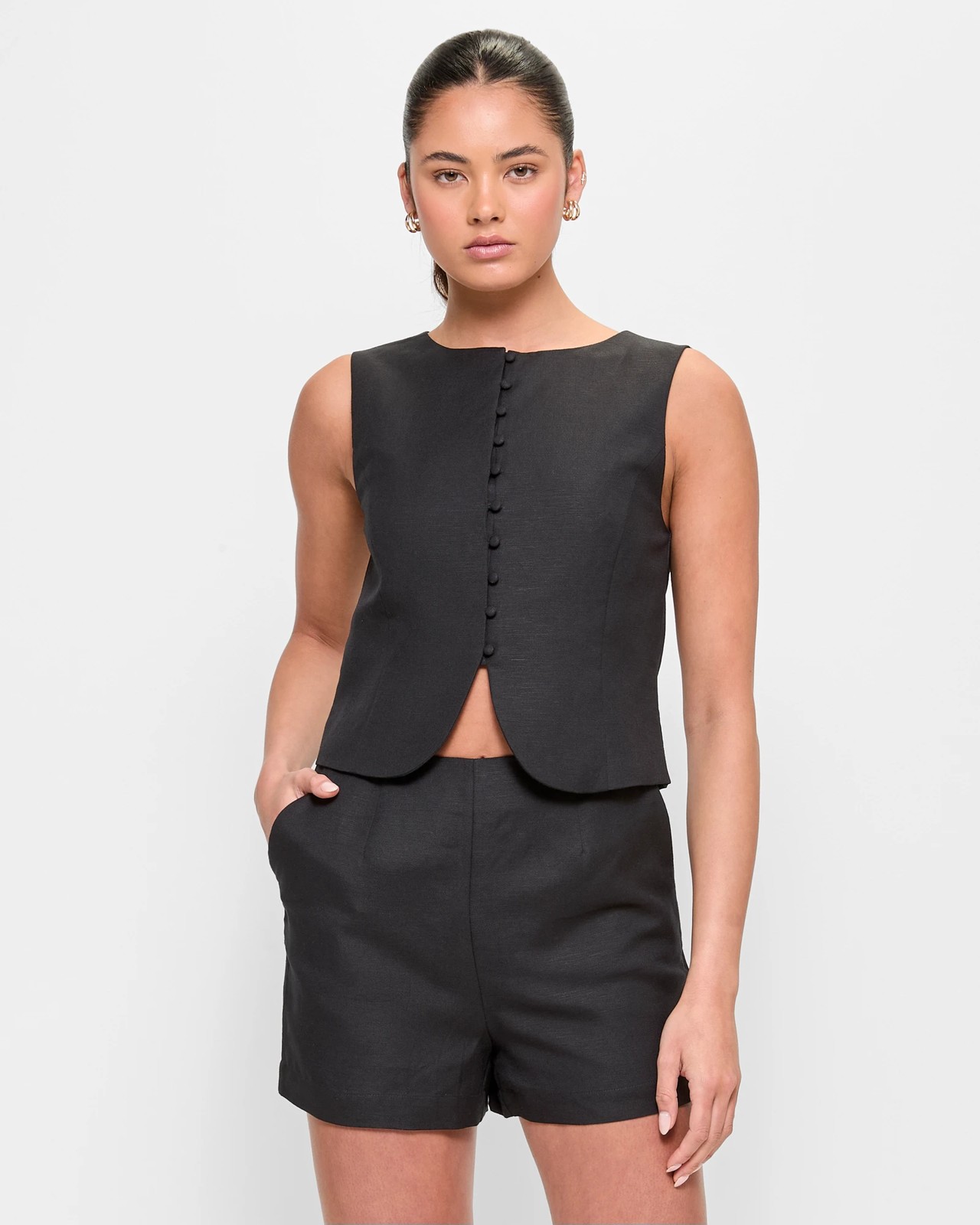 European Linen Blend High Waist Fitted Shorts - Lily Loves