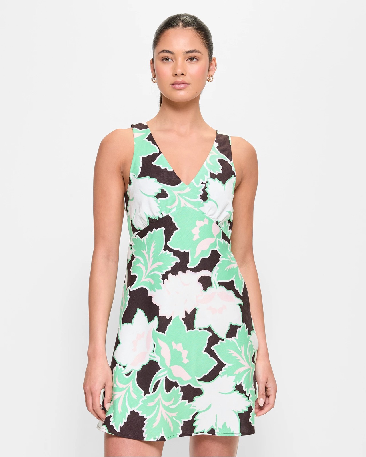 Step into effortless style with the European Linen Blend V-Neck Mini Dress from Lily Loves. Made from a blend of linen and viscose, this dress keeps you comfortable and cool all day long. Its sleeveless construction and substantial shoulder straps are perfect for summer days. Featuring a structured underbust and a-line design that enhances your figure, the deep v-back with a charming top tie adds an extra touch of allure. Whether for a casual day out or a special event, this dress is sure to be a go-to in your wardrobe.