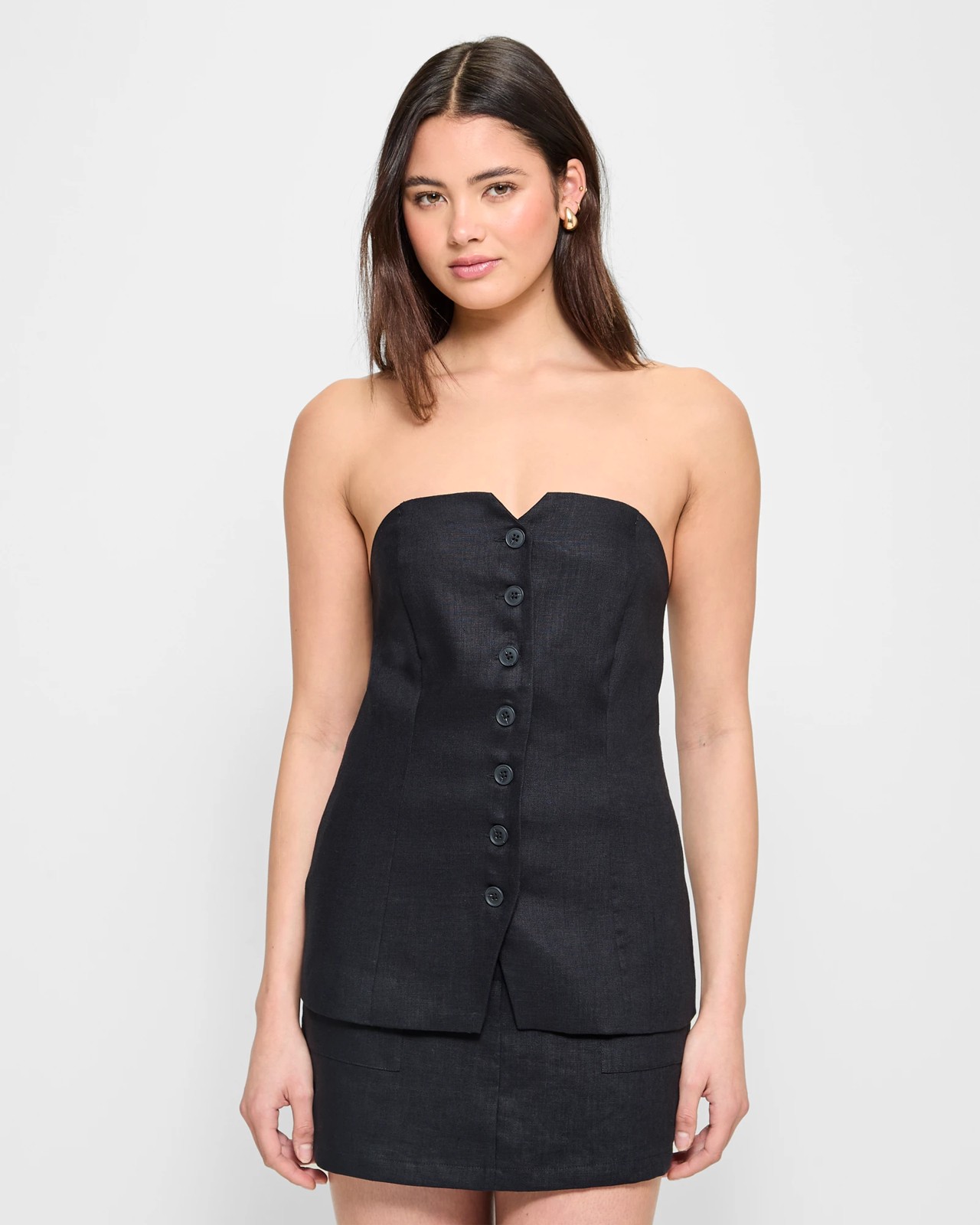 European Linen Button Front Corset Top - Lily Loves