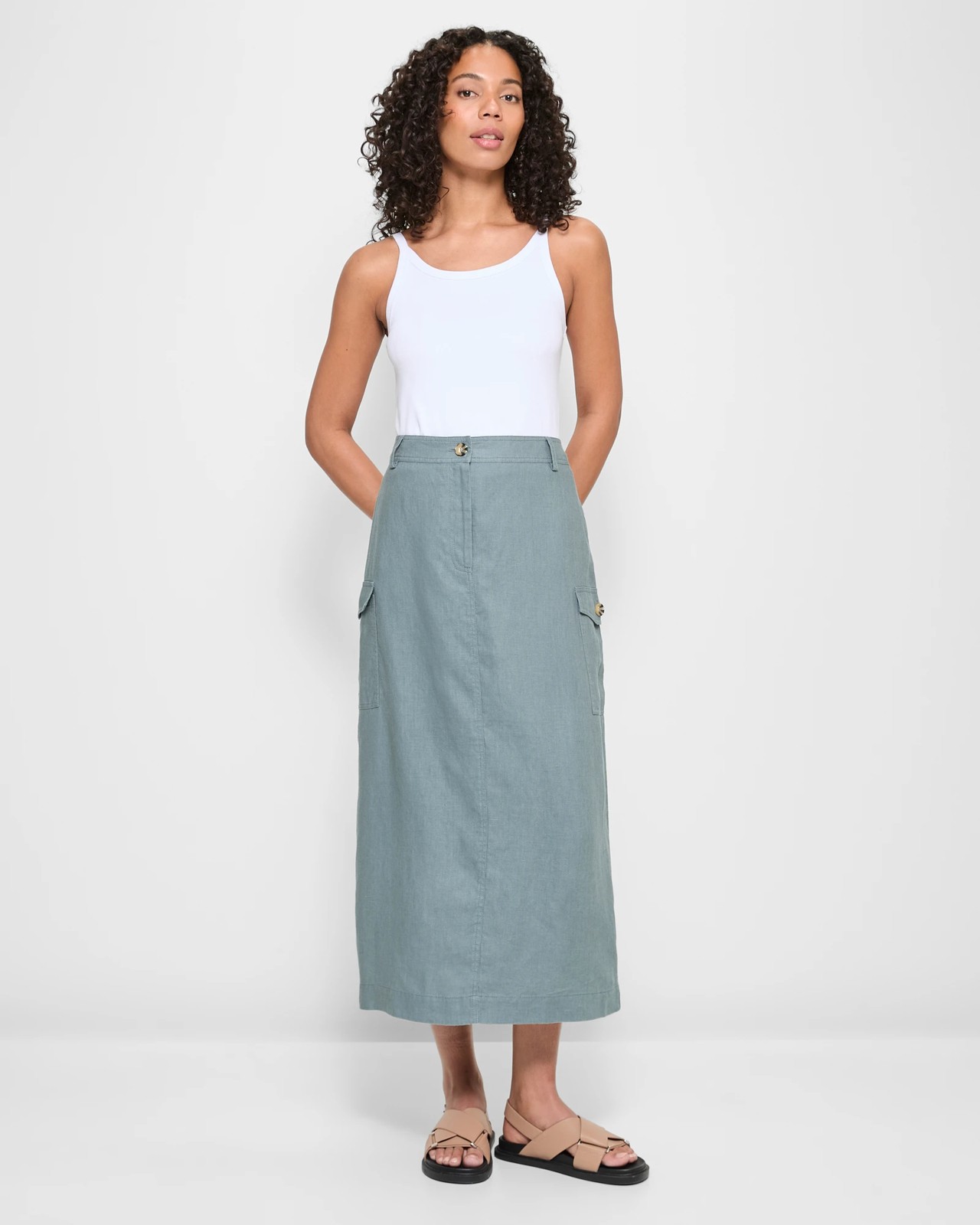 Discover the perfect blend comfort and style with our European Linen Cargo Maxi Skirt. Designed for your utmost convenience, this skirt features a breathable linen fabric that is light and airy. The structured waistband with belt loops ensures a well-fitted look, complemented by a front button and zip closure for an elegant finish. With practical side cargo pockets, you'll have plenty room for essentials on the go. The elegant maxi length adds a timeless appeal, while the back centre split allows for easy movement. Embrace sophistication and comfort in one chic piece. Get yours now and enjoy a new wardrobe favourite!