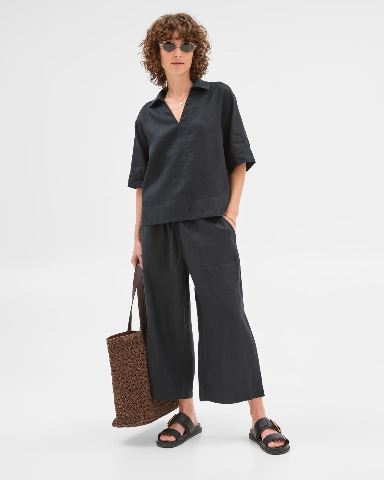 Step into comfort and style with these European linen cropped trousers, designed to keep you feeling light on your feet even on the warmest days. Their gentle, wide-leg shape and cropped length allow for plenty of movement, making them a great choice for lunch dates or afternoon strolls. The soft waistband adjusts seamlessly to your body, while the deep front pockets are perfect for carrying daily essentials. Treat yourself to comfort you can feel and a look you'll love to wear all season.
