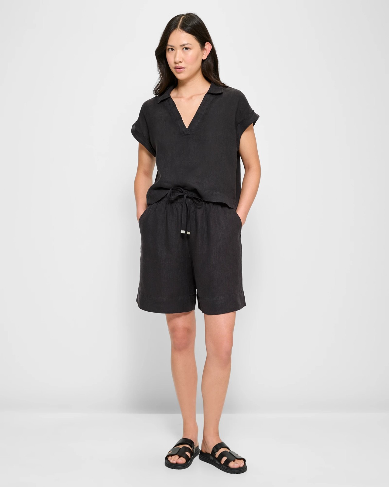 Step into comfort and style with our European Linen Long Shorts. Lovingly designed from European linen, these shorts promise to be a delightful addition to your wardrobe. They're high-waisted cut, complete with a thick elastic waistband and elegant pleating, assuring both elegance and ease. The lightweight and breathable fabric makes them perfect for any occasion, while the handy side pockets and neatly tailored mid-length offer practicality. Make them yours today and enjoy the perfect blend between casual and chic.