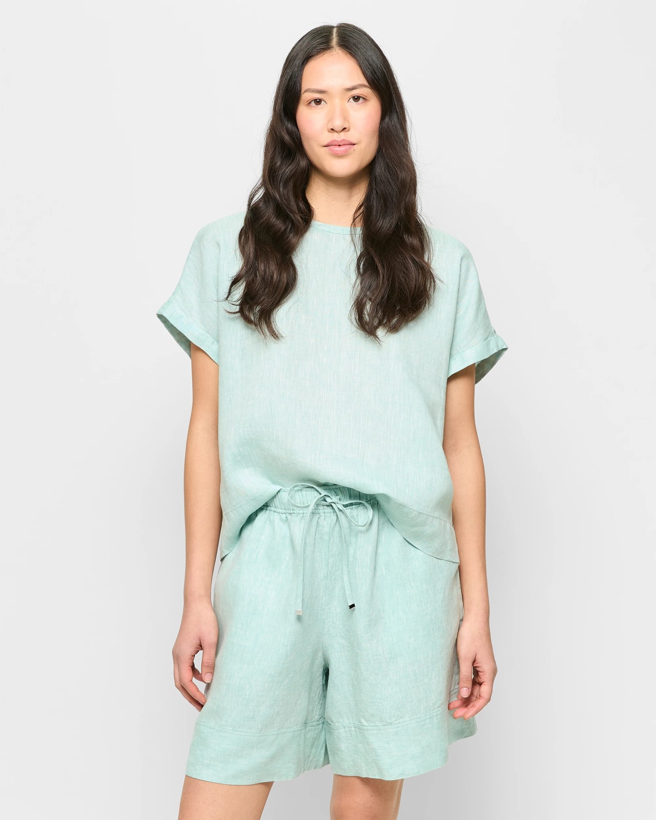 Step into warm weather style with these European Linen Long Shorts, designed for effortless comfort and ease. Made with light and airy linen, these shorts help you stay cool while enjoying everyday outings. The regular fit, mid-rise design, and elastic waist with a drawstring offer a relaxed and secure feel. With large side pockets and a distinctive cuffed finish, these shorts balance style and practicality, making them a dependable addition to your summer wardrobe. Refresh your outfit by adding these versatile long shorts to your collection today.