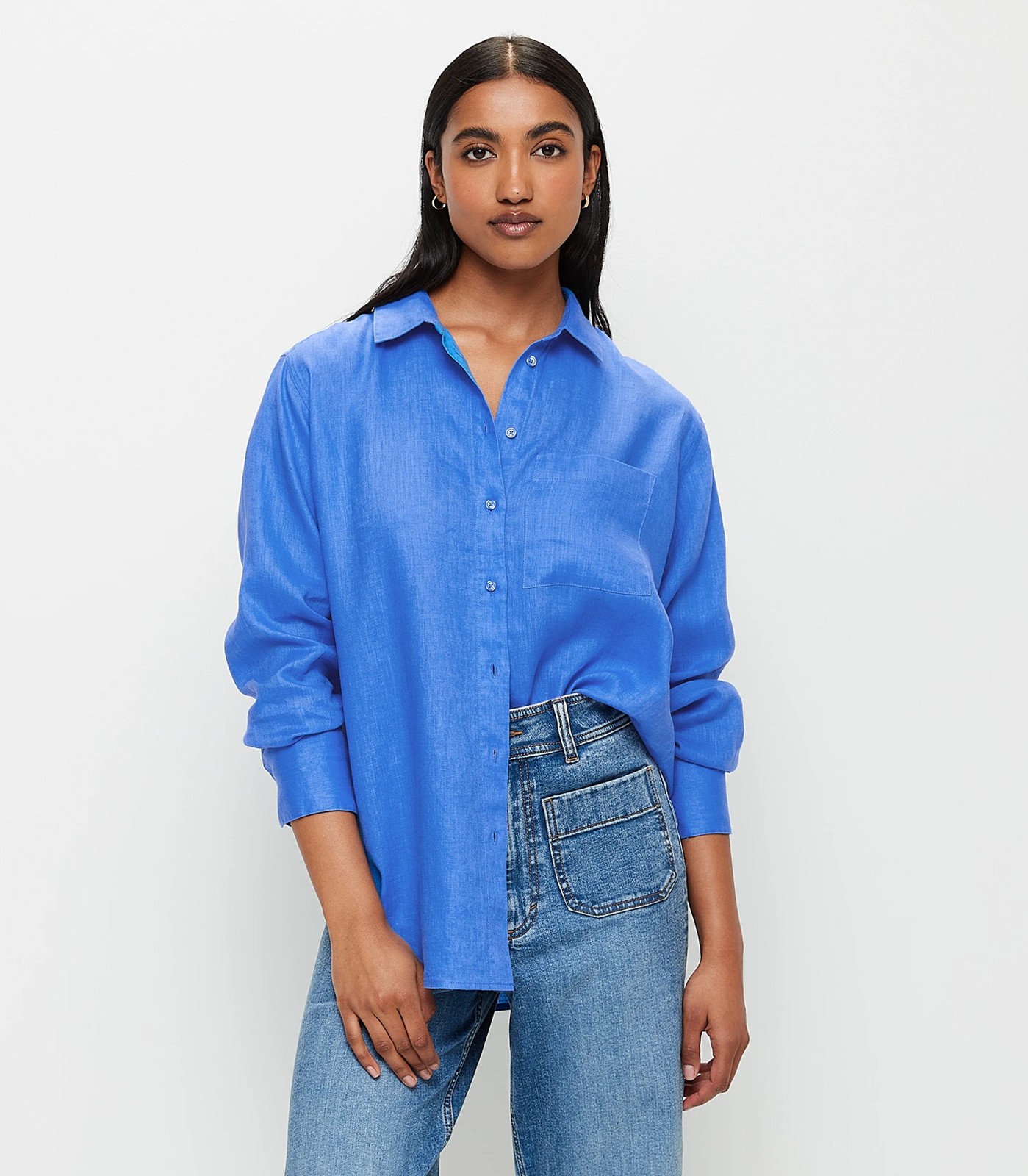 Welcome to your perfect summer staple: the European Linen Long Sleeve Shirt. This lightweight linen shirt is ideal for keeping you cool in the warmer months. The classic collared neckline and button through front give it a timeless look, while the chest pocket and curved hemline add subtle detail. Whether you team it with jeans for an effortless day look or dress it up with a skirt for evening wear, this beautiful linen shirt will be sure to turn heads.
