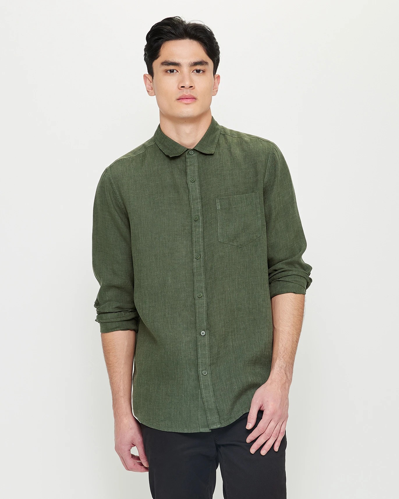 Introducing the perfect addition to your wardrobe. Our linen shirt is crafted from a lightweight and breathable European linen fabric, making it an ideal choice for all seasons. The collared neckline and button down front give this shirt a timeless style that will always be on trend. It features a single chest pocket and long sleeves for added comfort and practicality, while the curved hem line and back centre pleat give this shirt a classic silhouette that looks great on everyone. Whether you're dressing up or dressing down, our Linen Shirt is sure to become your new go-to piece!