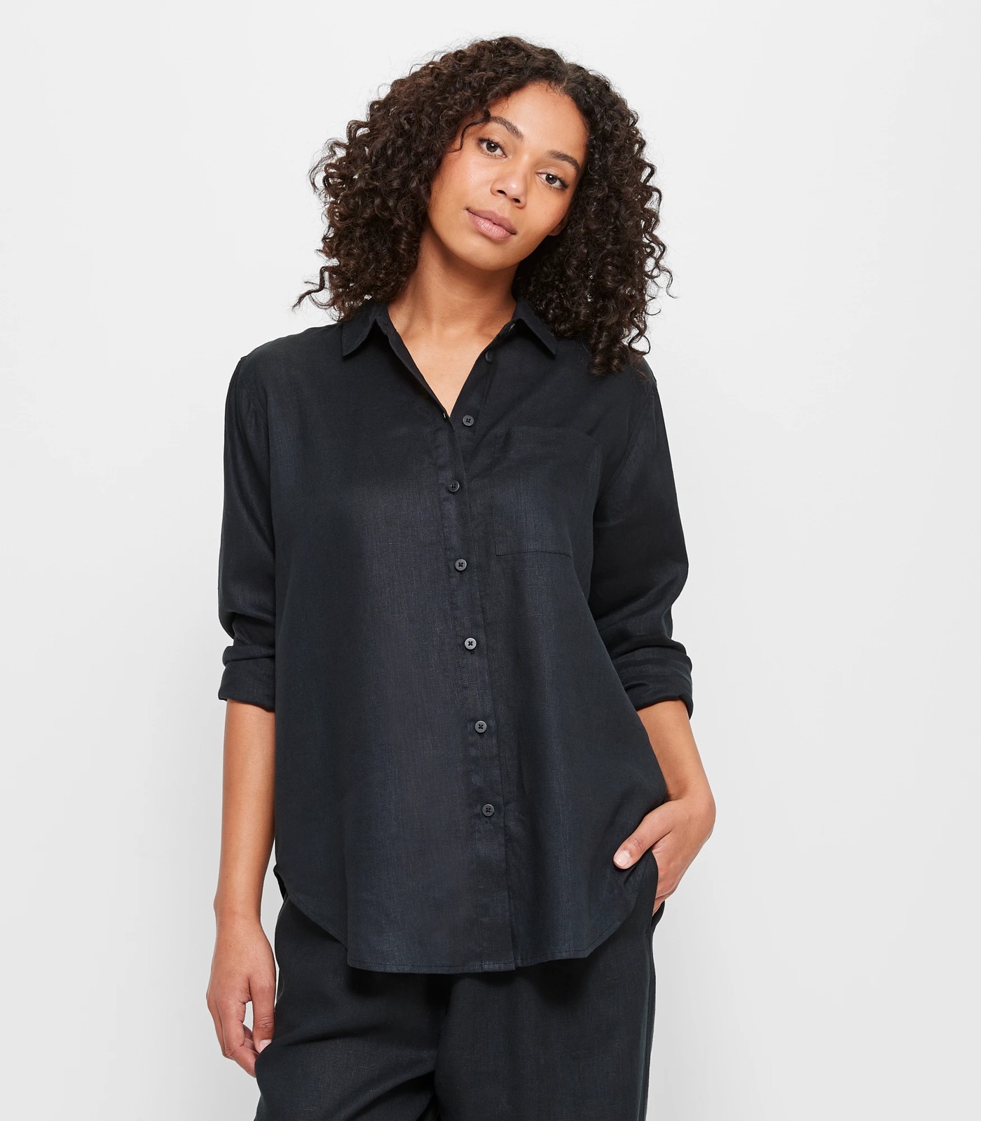 Welcome to your perfect summer staple: the European Linen Long Sleeve Shirt. This lightweight linen shirt is ideal for keeping you cool in the warmer months. The classic collared neckline and button through front give it a timeless look, while the chest pocket and curved hemline add subtle detail. Whether you team it with jeans for an effortless day look or dress it up with a skirt for evening wear, this beautiful linen shirt will be sure to turn heads.