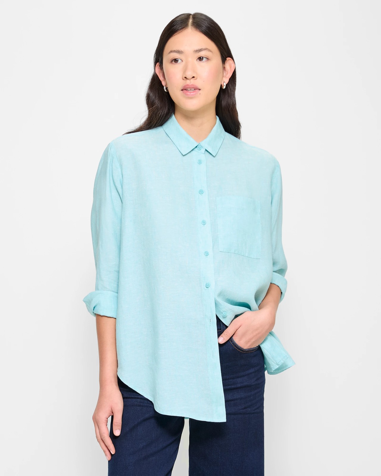 Step into comfort with our European Linen Shirt. The shirt is tailored from a lightweight and breathable linen fabric that offers comfort throughout the day. The classic design incorporates a round collared neckline, button-through front, and elegant cuffed sleeves for a refined look. The open chest pocket adds a touch of practicality, while the curved hemline enhances the overall style. With a perfect blend of style and sophistication, our European Linen Shirt is a must-have addition to your wardrobe. Elevate your everyday look with our effortlessly chic shirt!
