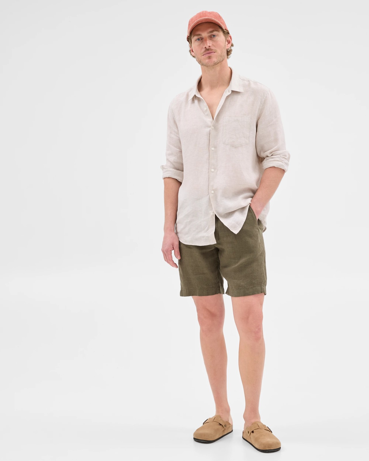 Experience easy summer style with these men’s chino shorts in a linen blend, offering a gentle feel against your skin and plenty of breathability for hot days. The regular fit is designed with comfort in mind, while the subtle pleats and precise tailoring ensure a smart and modern appearance. With a structured waistband, practical belt loops, and handy pockets for daily essentials, these shorts are ready for any occasion, from days outdoors to relaxed dinners with friends. Add these to your collection and enjoy confidence and comfort wherever you go.