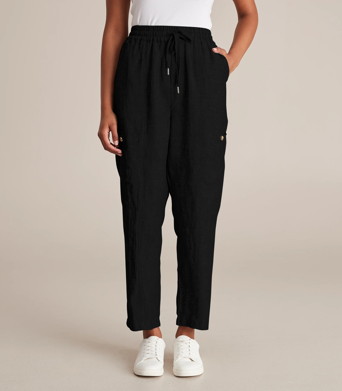 A feminine and relaxed fit, the pull on cargo pants will flatter every shape and size, has an elastic waistband for easy pull on, front cargo pockets for your essentials and have a cropped leg length.