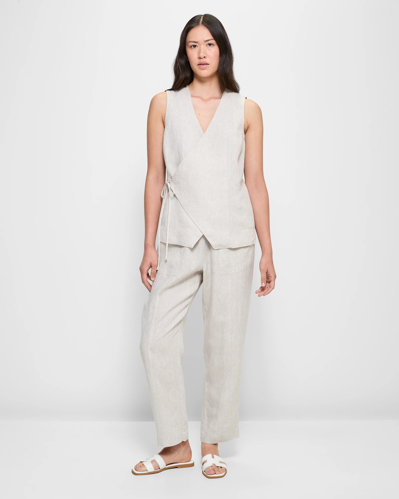 Experience comfort and style with our European Linen Seam Detail Pants. These trousers are made from fine European linen that is both light and breathable, making them perfect for everyday wear. Featuring a regular fit and an easy pull-on design, they come with an elastic waistband and drawstring for added convenience. The pants boast front exposed pockets and a centre seam running down the front and back of the legs. With their straight cut and full-length design, these trousers are a versatile addition to any wardrobe. Don't miss out – make them yours today!