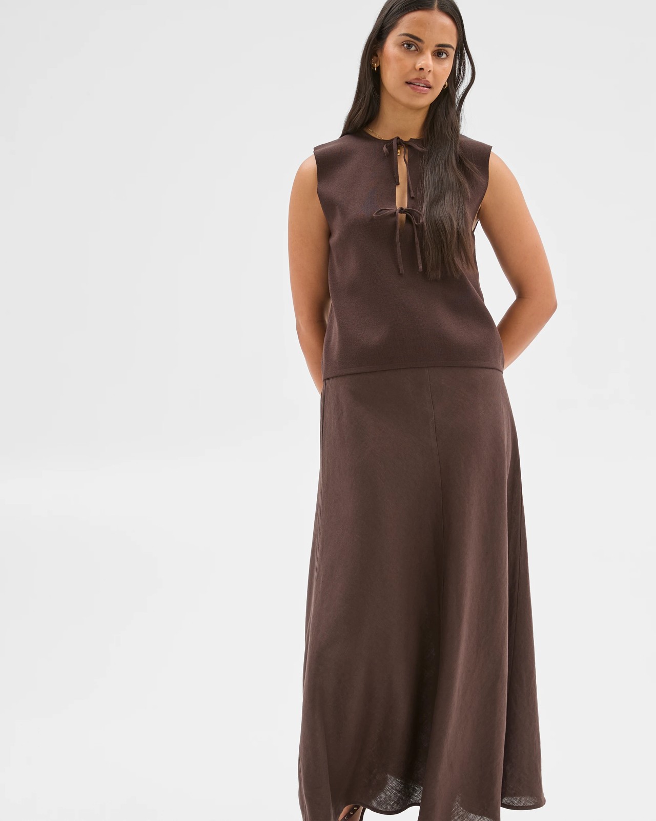 Refresh your look with this European Linen Seam Detail Skirt, designed to bring comfort and style together. Made from European linen, it feels wonderfully light and breathable for all-day ease. The midi length and bias cut ensure you can move about freely, while the fixed front waist and gentle elastic at the back promise an easy fit. Distinct seam details give the skirt a touch of contemporary charm, and its regular fit keeps you comfortable whether you're out shopping, meeting friends, or simply enjoying a day out. Experience the charm of versatile fashion and make every outfit effortlessly chic. Don’t miss out—add this beautiful skirt to your collection today.
