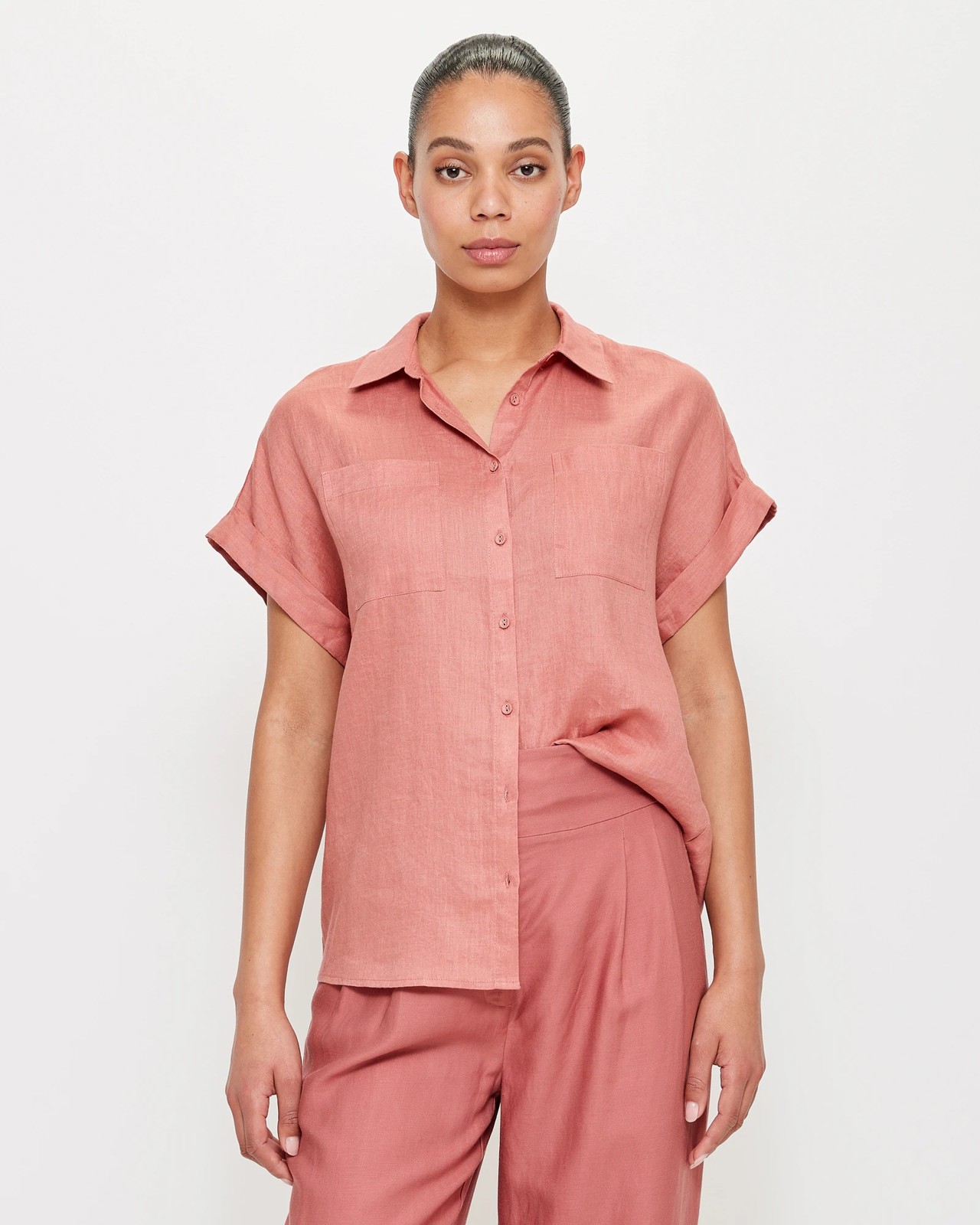 European Linen Blend Short Sleeve Cuffed Shirt - Preview