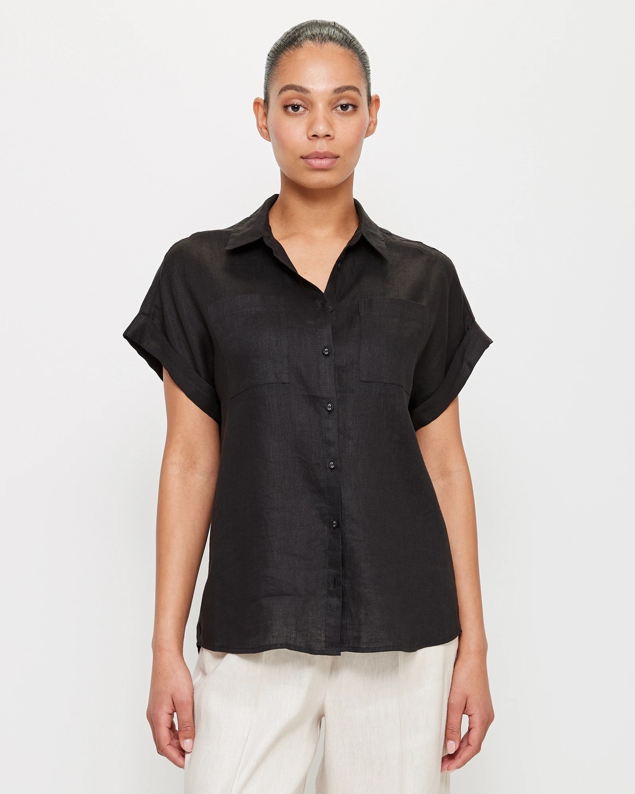 European Linen Blend Short Sleeve Cuffed Shirt - Preview