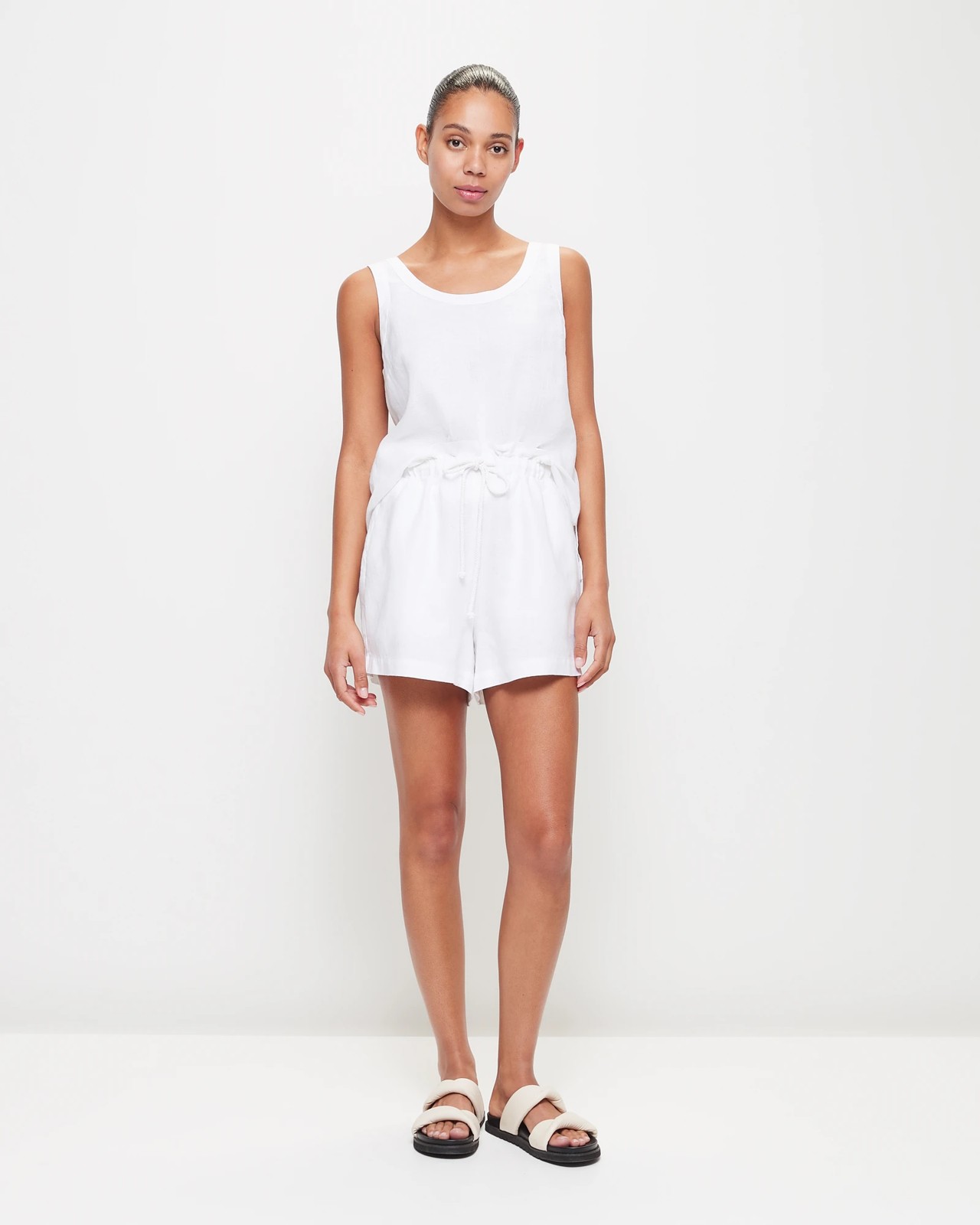 A lightweight everyday short, the European linen shorts feature an elastic paperbag-like waistband, side pockets for all of your essentials and a short leg length.
