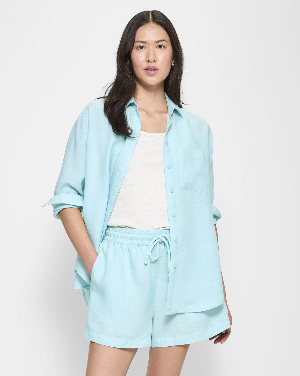 Experience the ultimate comfort and style with our European Linen Shorts for women. Crafted from premium European linen, these shorts are light, airy, and perfect for warm days. The regular fit and thick elastic waistband with a drawstring ensure a snug yet flexible fit, while the side seam pockets add practicality to the chic design. Embrace the short length and straight hemline that exude effortless sophistication. Elevate your wardrobe with these versatile shorts that seamlessly blend fashion and functionality.