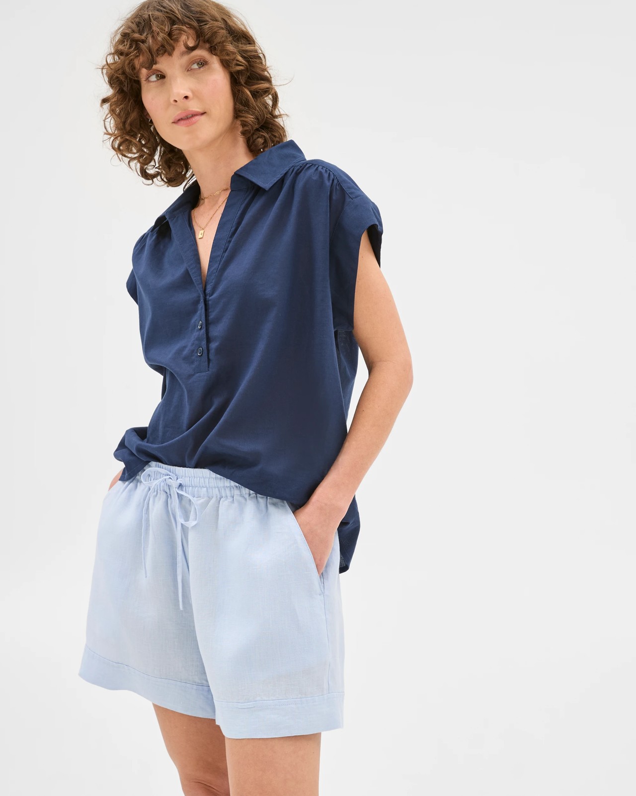 Experience unmatched comfort and style with our European Linen Shorts, designed for the modern woman. Made from high-quality European linen, these shorts are lightweight and airy, perfect for warm days. With a regular fit and a thick elastic waistband featuring a drawstring, they offer maximum comfort. The side pockets add a functional touch, while the straight and cuffed hemline delivers a chic, casual look. Update your summer wardrobe with these versatile shorts and enjoy the perfect blend of fashion and comfort.