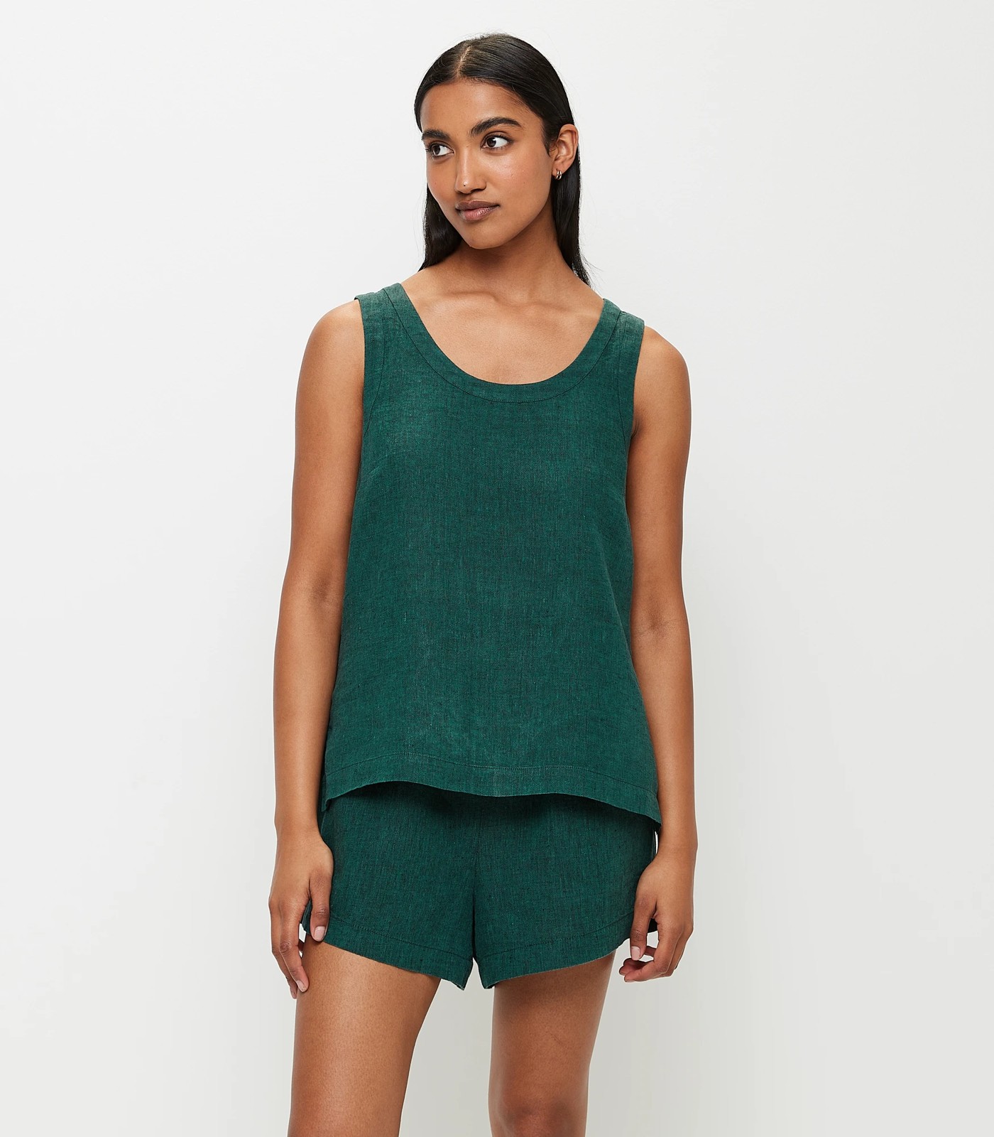 A great lightweight design for everyday wear, the European linen tank top has a scoop neckline, sleeveless design and a straight hemline.