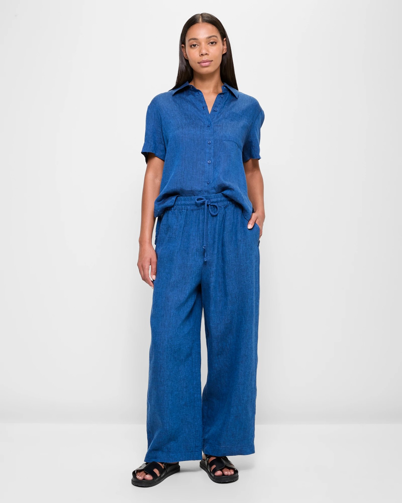 Experience the pure comfort and elegance with our European Linen Wide Leg Pants. Crafted from premium European linen, these pants are a must-have for any wardrobe. The light and airy fabric offers breathability, perfect for all-day wear. Designed with a high waist and a thick elastic waistband with a drawstring, these pants provide a flattering fit and ultimate comfort. The wide-leg cut and side seam pockets add functionality, while the straight hemline gives a timeless appeal. Upgrade your style effortlessly with these versatile pants.