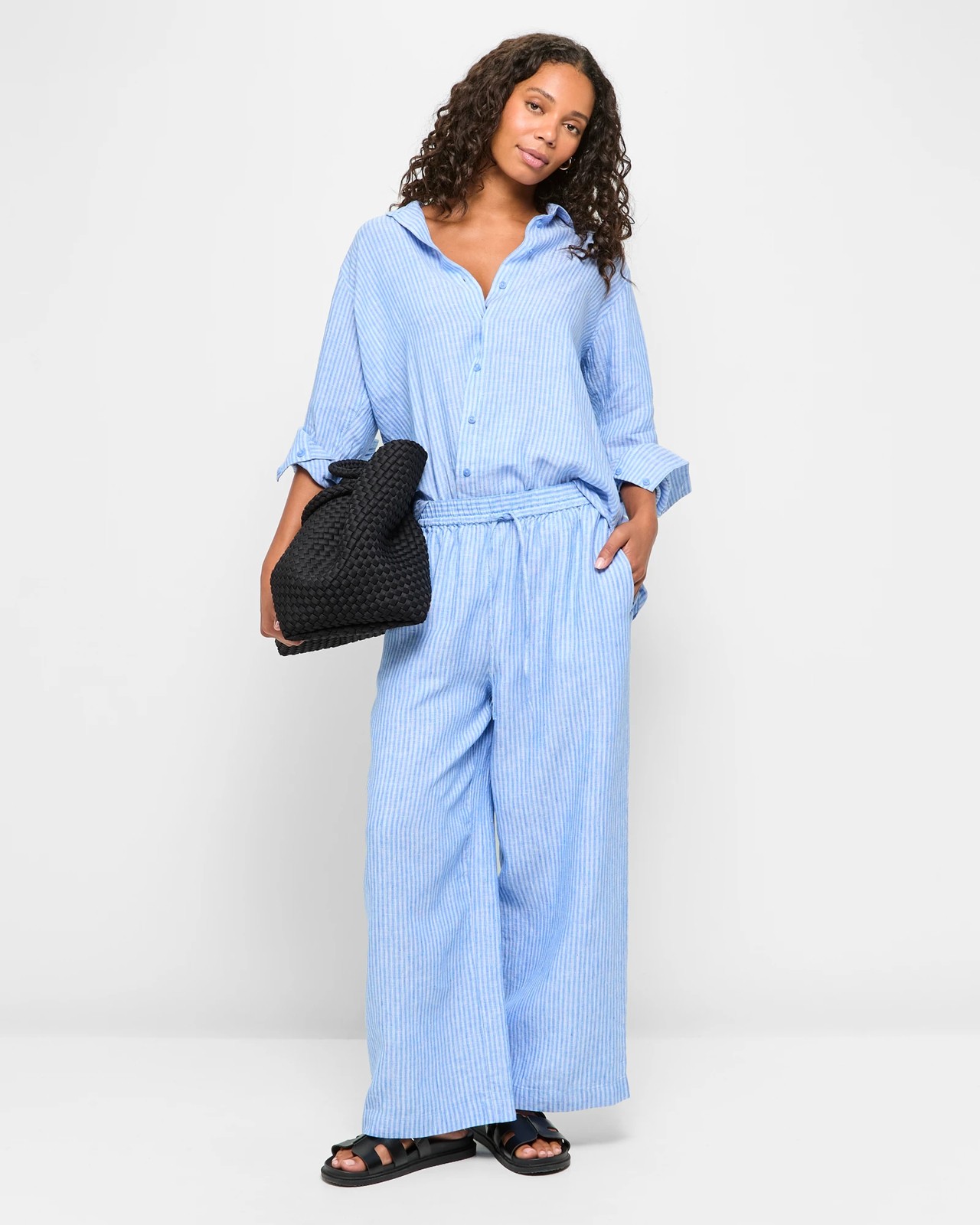 European Linen Wide Leg Pants - Summer Blue Stripe