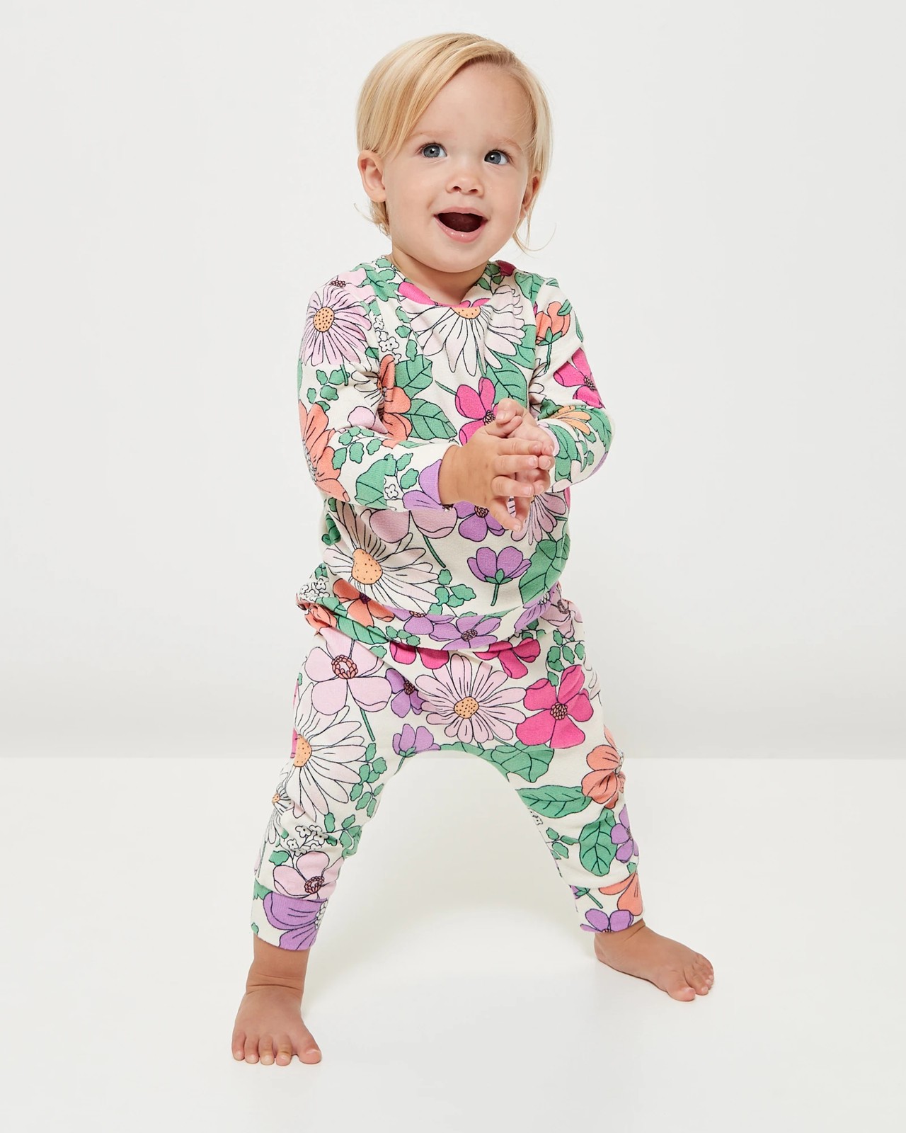 Family Matching Baby Girls Cosy Floral Knit Pyjama Set